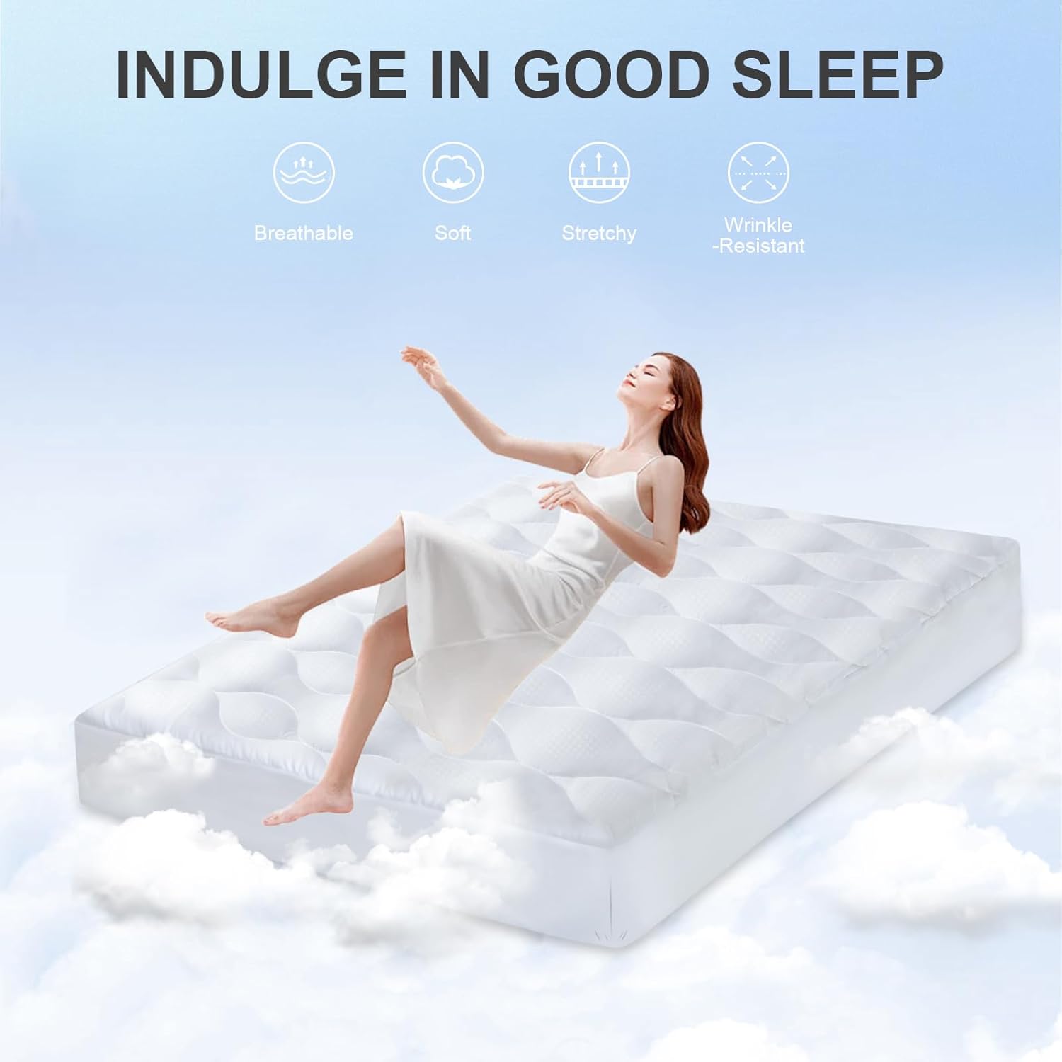 【Extend Your Deep Sleep Time】Experience longer, more restorative sleep with our pillow top mattress topper’s plush but breathable design. The combination of just the right 400gsm fill ratio and thoughtful construction is perfect for you to use all year round, extending deep sleep time and helping you wake up refreshed and revitalized every morning