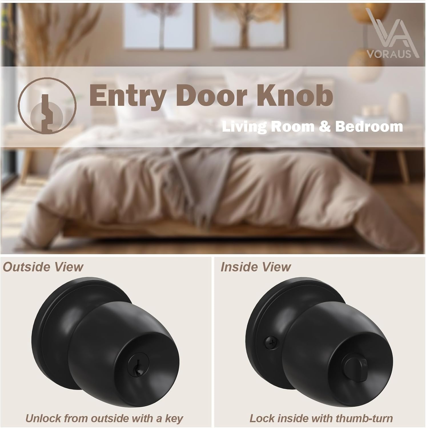 SECURE AND DURABLE ROOM DOOR LOCKS: This door locks for front door offers reliable privacy and security for bedroom door locks, interior door knobs, and exterior door knob needs. Its all-metal construction ensures long-lasting strength and durability