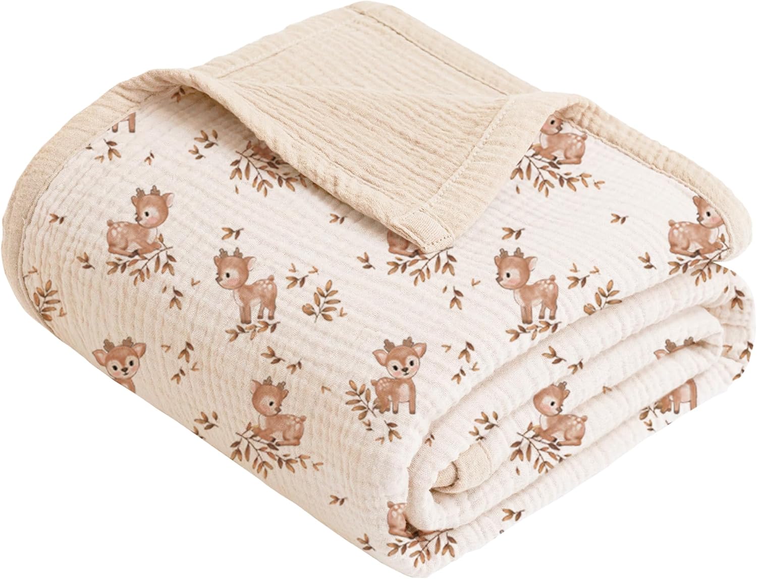 Konssy Muslin Baby Blankets, 100% Cotton Quilt Blankets for Baby Infant Toddler, Soft and Lightweight Nursery Crib Blanket for Baby Boys and Girls 43″x40″ (Deer)