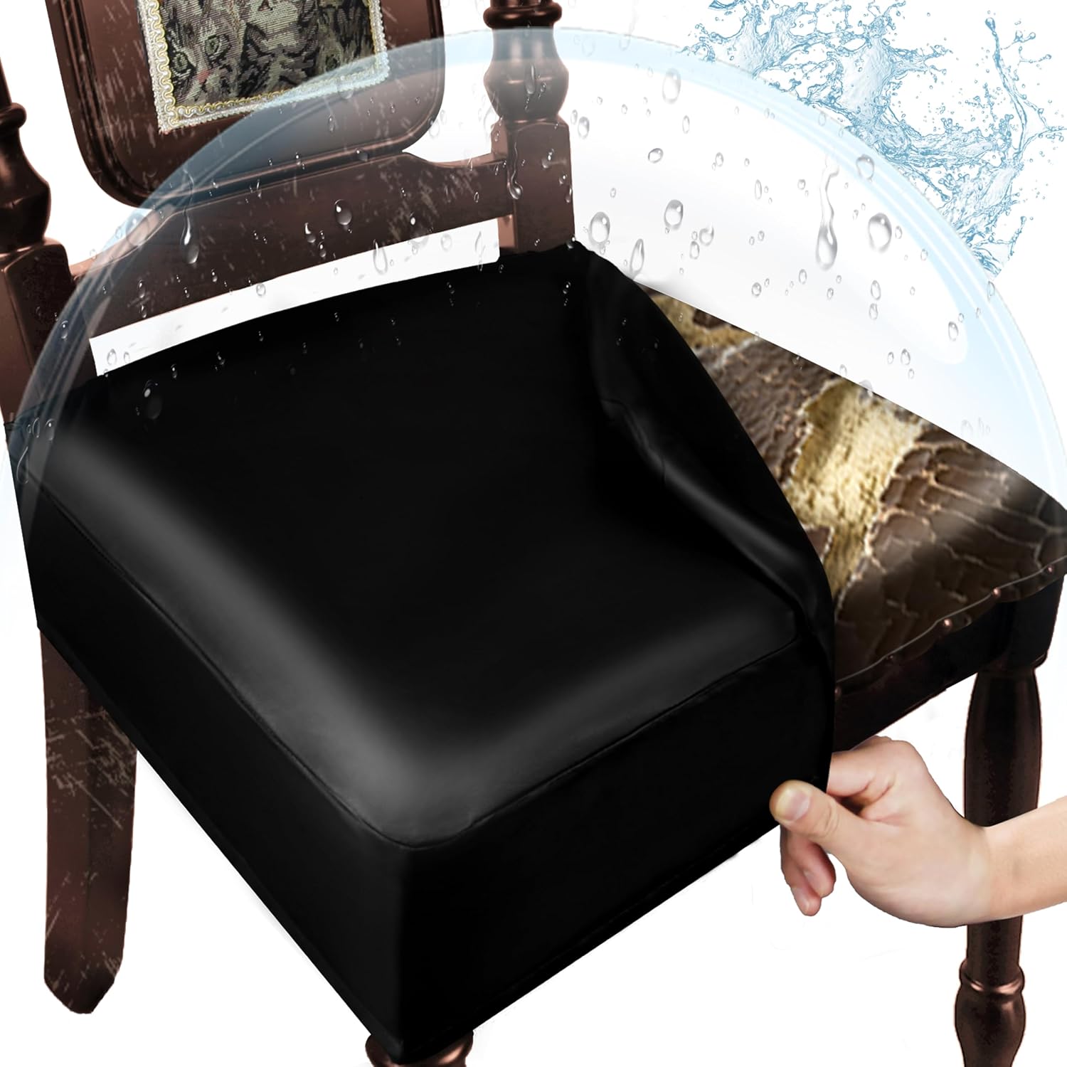 Comprehensive Protection: WUSOUPU’s black kitchen seat covers have a classic leather look that complements your kitchen environment. Waterproof seat cover for dining chairs can easily handle spilled drinks, food residue, pet scratches, urine while adding interest to your home decor. Chair covers for dining room, living room, restaurant, celebration and party chairs