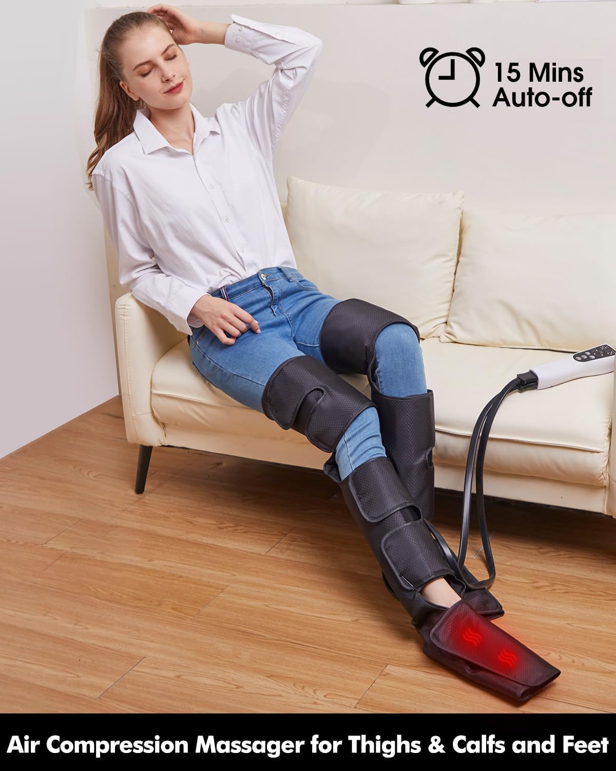 Leg Air Compression Massager for Foot Heat, Air Compression Calf Massage and Thigh Massage, Handheld Controller 3 Intensities 3 Modes (with 4 Extensions and Portable Bag), Gifts for Women