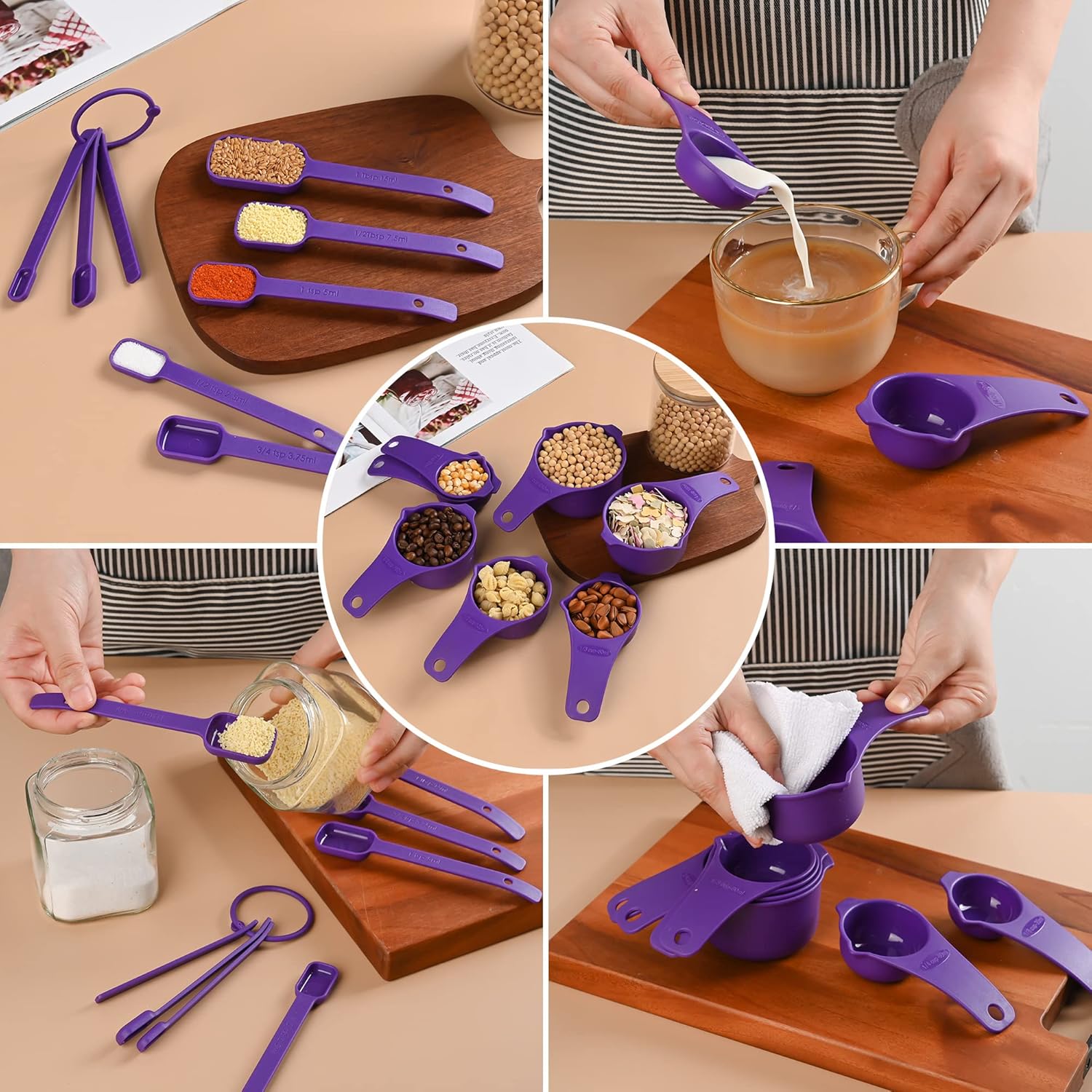 and cooking, stackable measuring cups and spoons for space-saving storage.