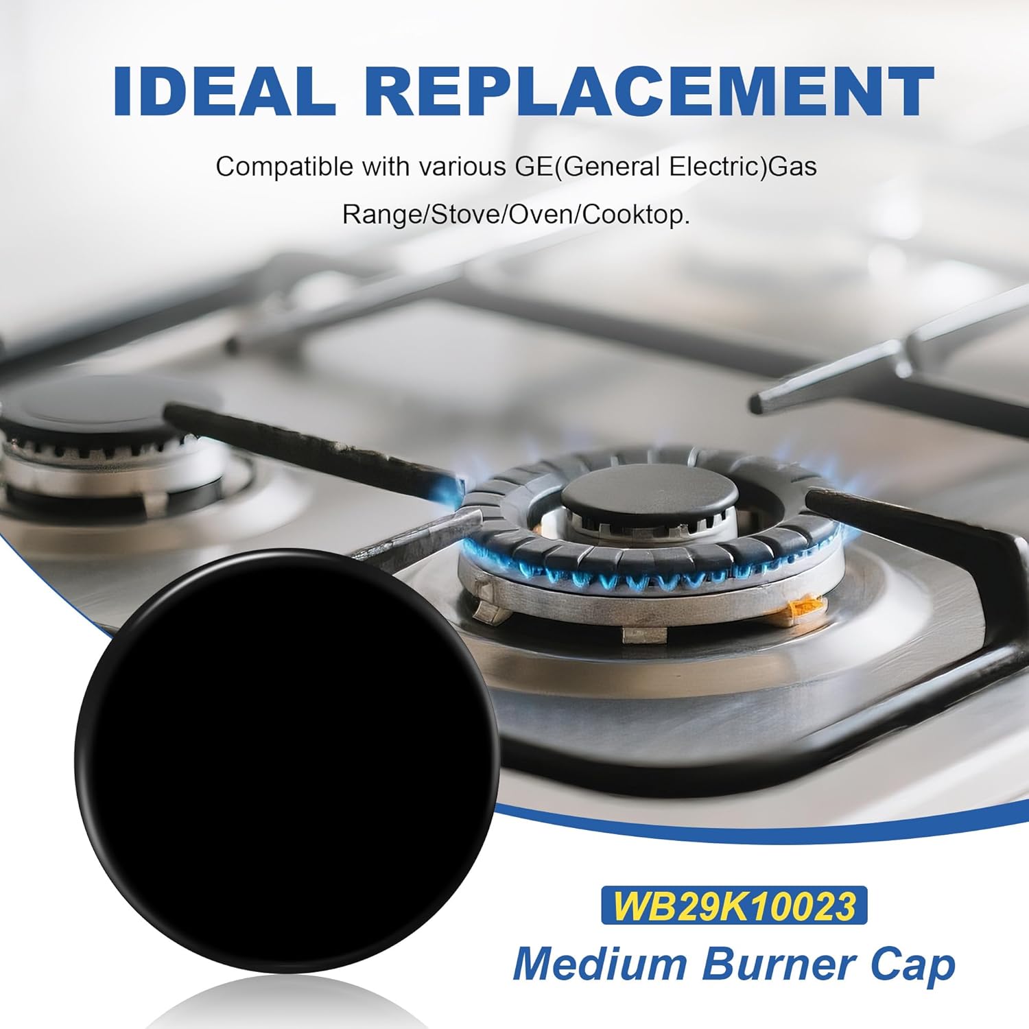 Ideal replacement product:This WB29K10023 Gas Range Surface Burner Cap (3.2″ diameter) is designed as a direct replacement for medium burners on GE Gas Ranges/Stoves/Ovens. Replaces part numbers: AP3793089, 1086622, AH954202, EA954202, PS954202