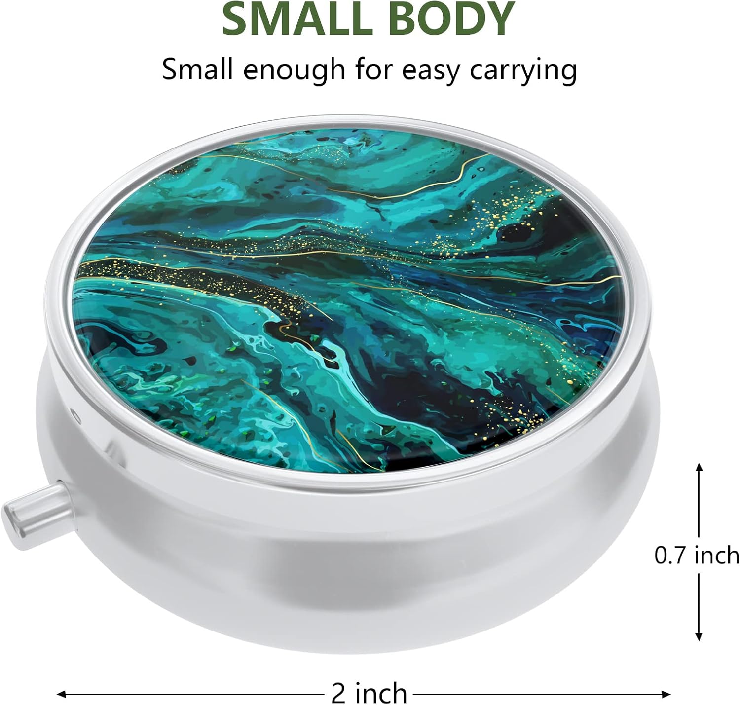 Portable and Compact Size: This lightweight and portable pill box measures 2.2 x 2.2 x 0.73 in, only 1 oz weight, has a big capacity to hold 25 pieces pills and small enough for easy carrying. Fits for everyday use, easy to carry with or slip into pocket