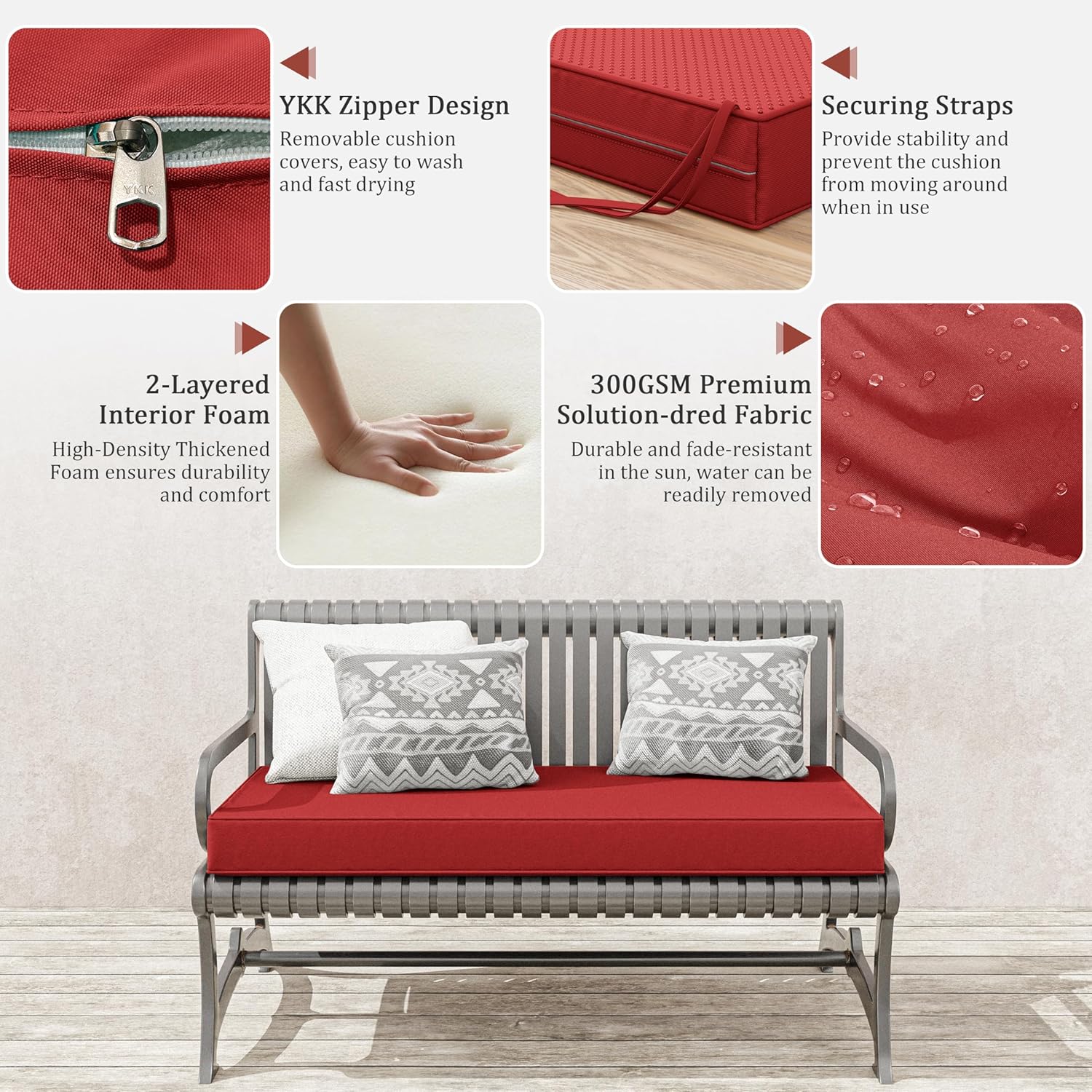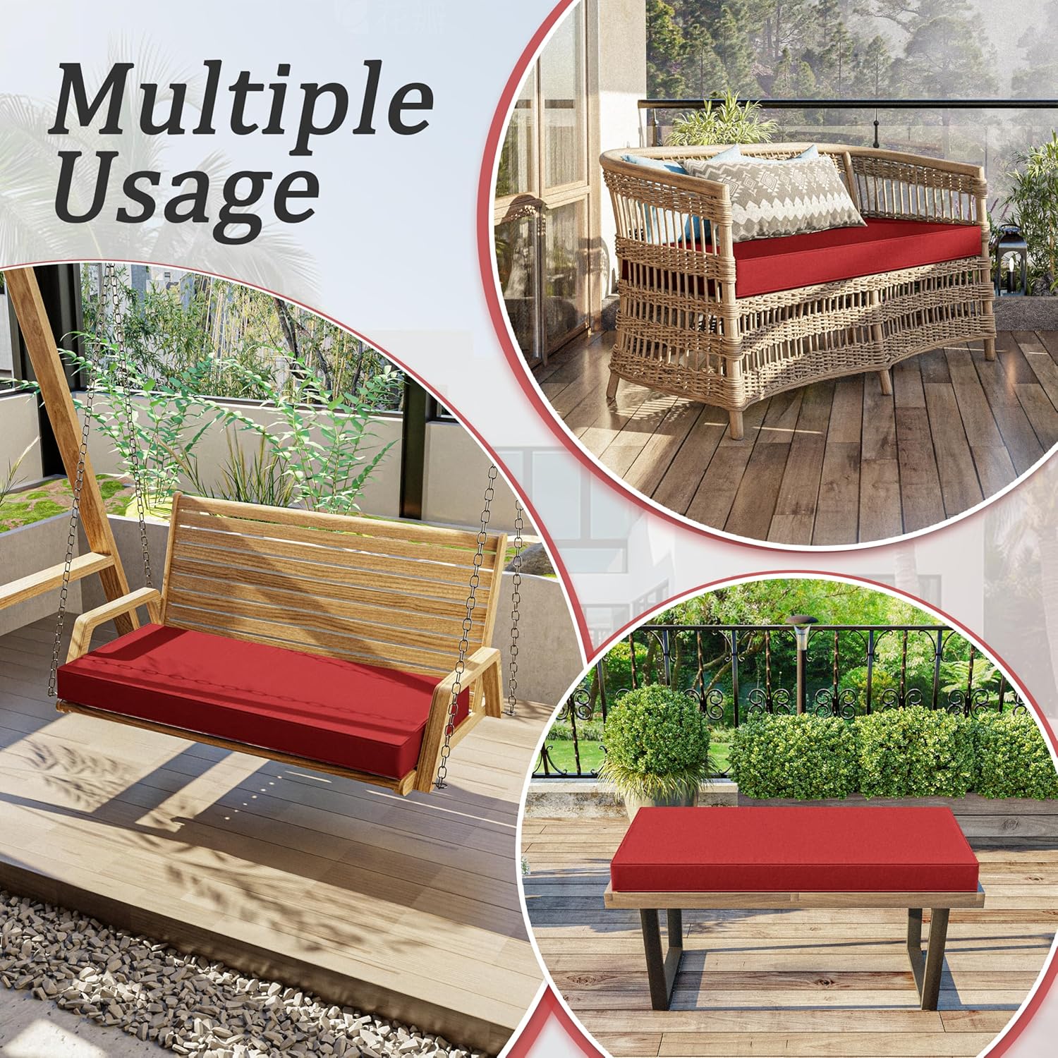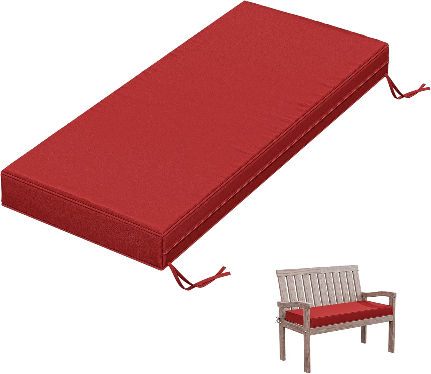 Outdoor Bench Cushion 42 X 18 X 3.5 Inch Thick Waterproof Patio Furniture Cushions, Patio Porch Swing Replacement Seat Pad with Tie Straps and Anti-Slip, for Backyard Garden, Red