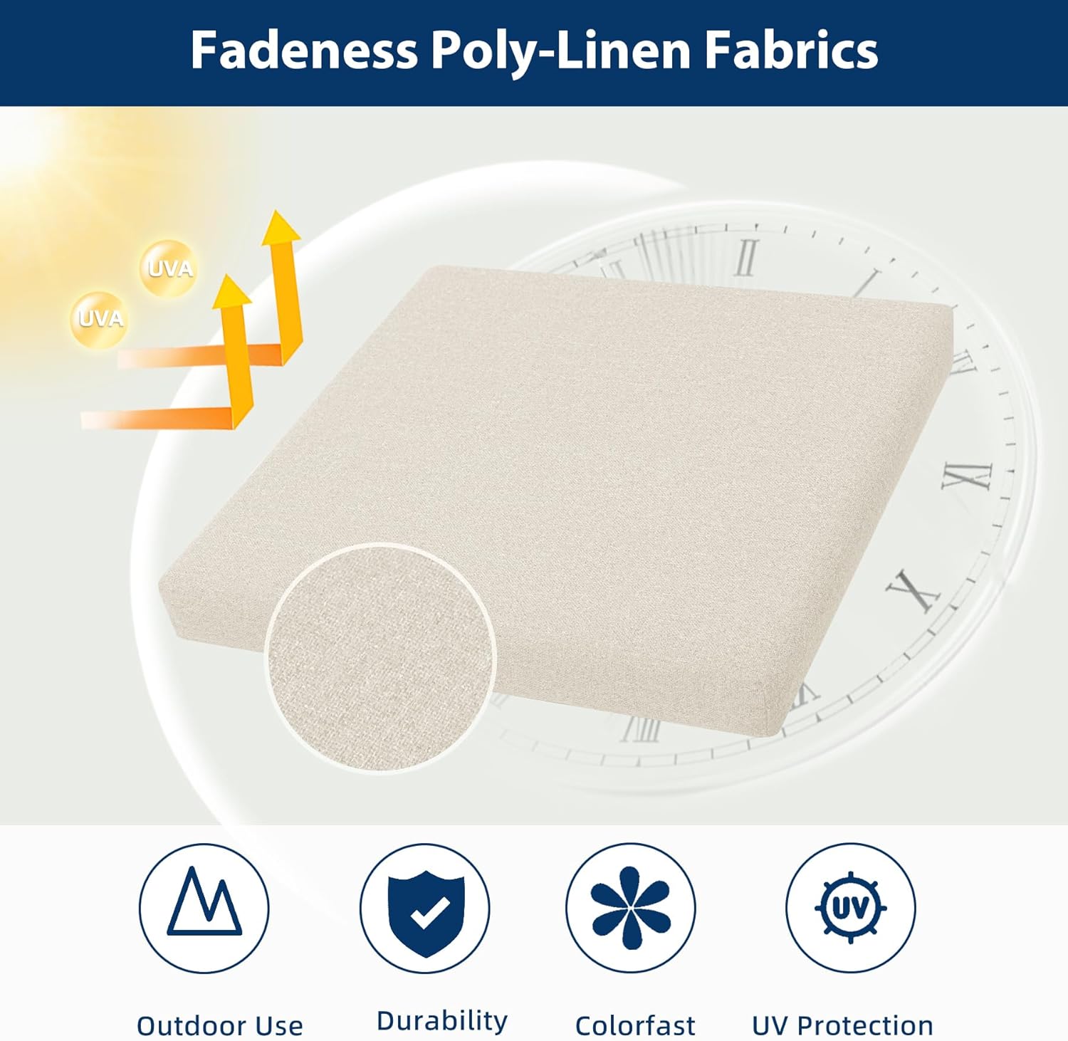 Fadeness, durable poly-linen fabrics: Favofamilie patio cushions are made of faux linen fabric, with a quality dyeing process that prevents these fabrics from fading, even after prolonged exposure to midday sunlight. The UV resistant feature keeps the cushions in vibrant colors’ season after season.