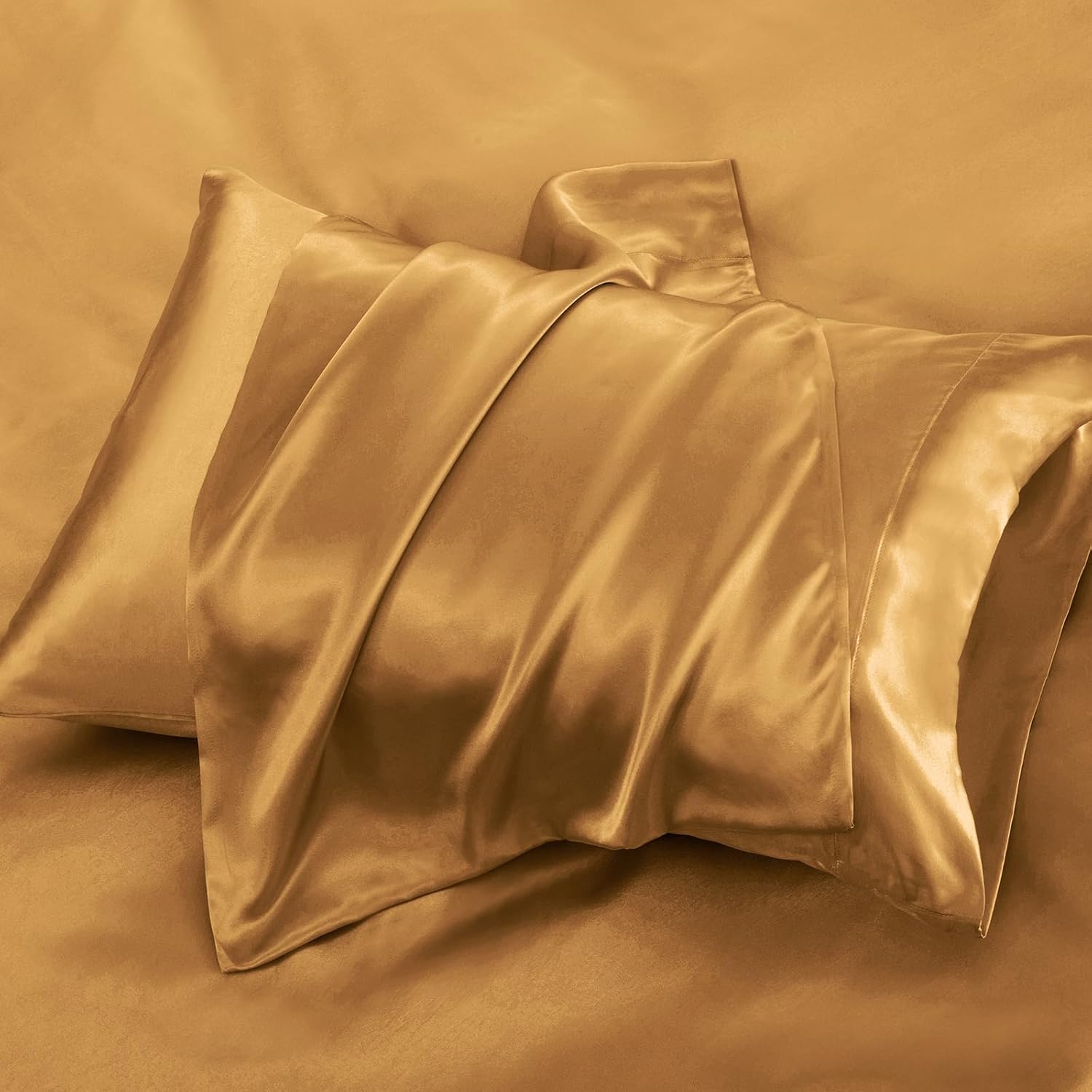 P Pothuiny 6 Pieces King Satin Sheets Luxury Silky Rich Gold Satin Bedding Sheet Set, 1 Deep Pocket Fitted Sheet + 1 Flat Sheet + 4 Pillow Cases