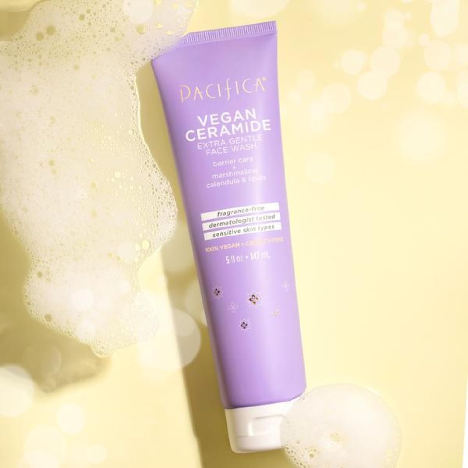 VEGAN CERAMIDE BARRIER REPAIR EXTRA GENTLE FACE WASH this dermatologist & allergy tested, fragrance-free, super gentle face wash uses vegan ceramides to support your skin’s barrier, while removing makeup, oil and impurities
