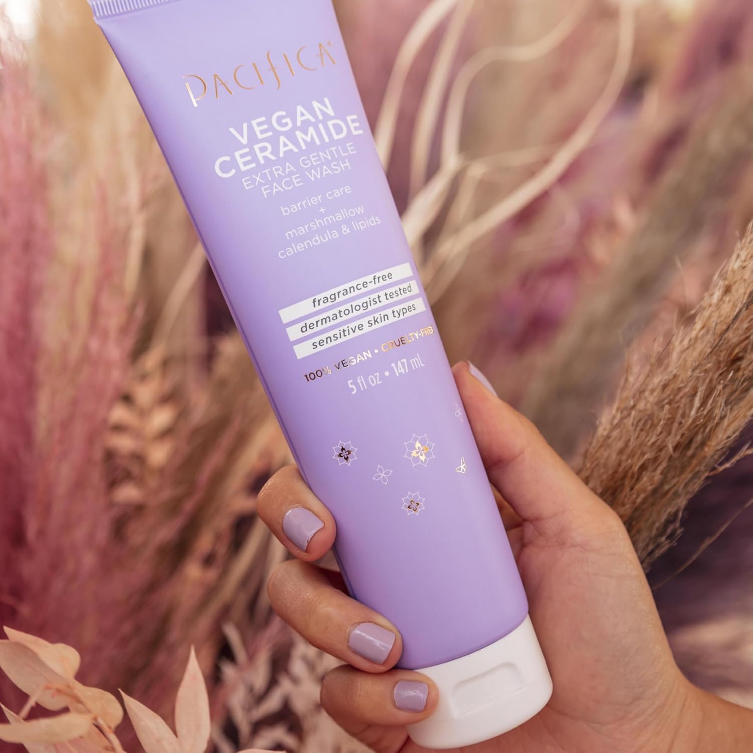 VEGAN CERAMIDE EXTRA GENTLE FACE WASH – Barrier care just got better. Formulated for sensitive skin, this dermatologist-tested, fragrance-free, super gentle face wash uses vegan ceramides to support your skin’s barrier, while removing makeup, oil and impurities. This sulfate-free light foaming cleanser harnesses the power of plants and phytonutrients to gently cleanse without stripping your beautiful skin. Marshmallow root extract & calendula help calm & soothe.
