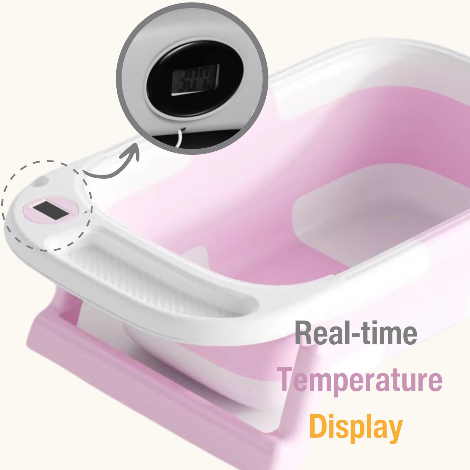 Temperature Monitoring: Equipped with a built-in water thermometer and LCD screen, our bathtub ensures the water temperature remains perfect at all times. Easily make adjustments to keep your baby comfortable throughout their bath.