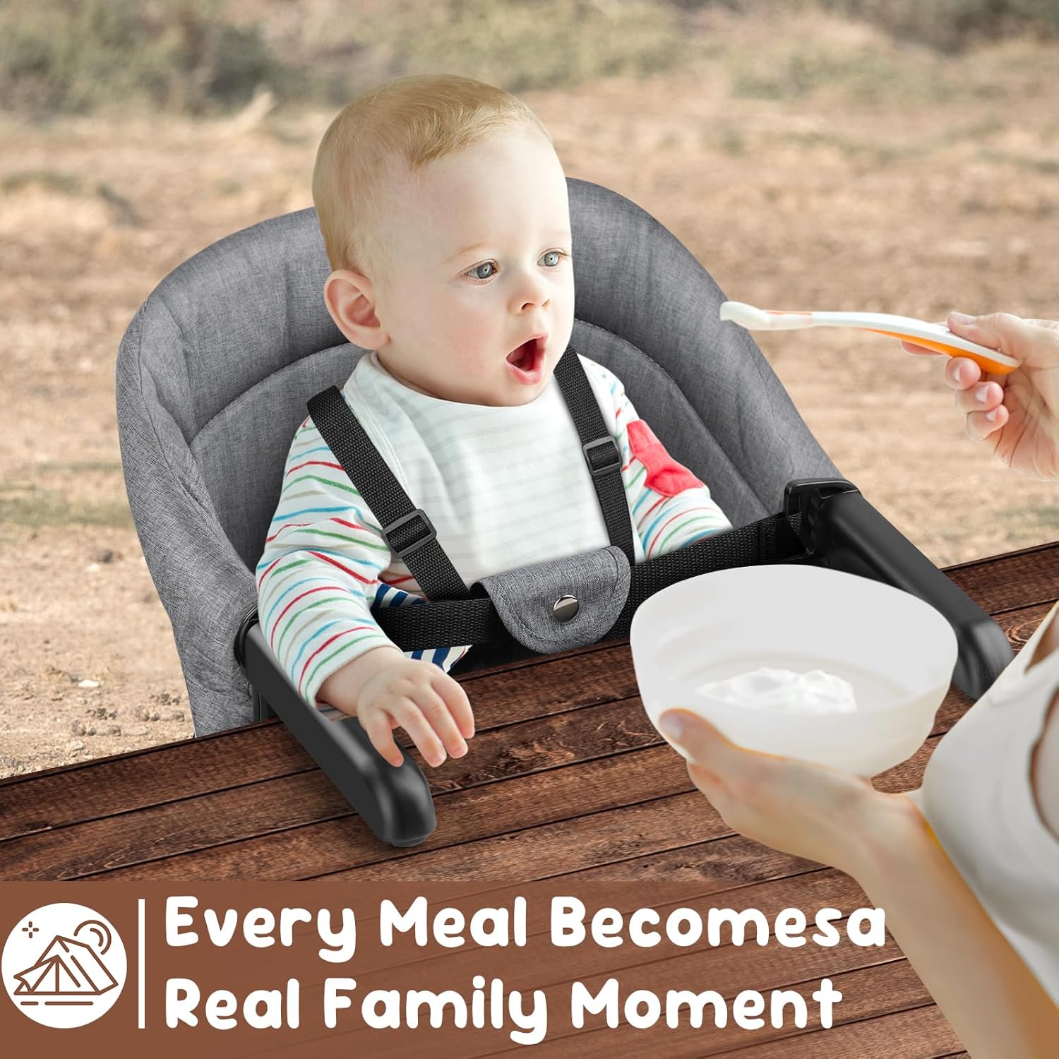 Portable Hook-On Baby High Chair with Clip-On Design & 37 lb Weight Capacity | Foldable Travel & Home Use for Babies 6-36 Months | Includes Storage Bag, Grey