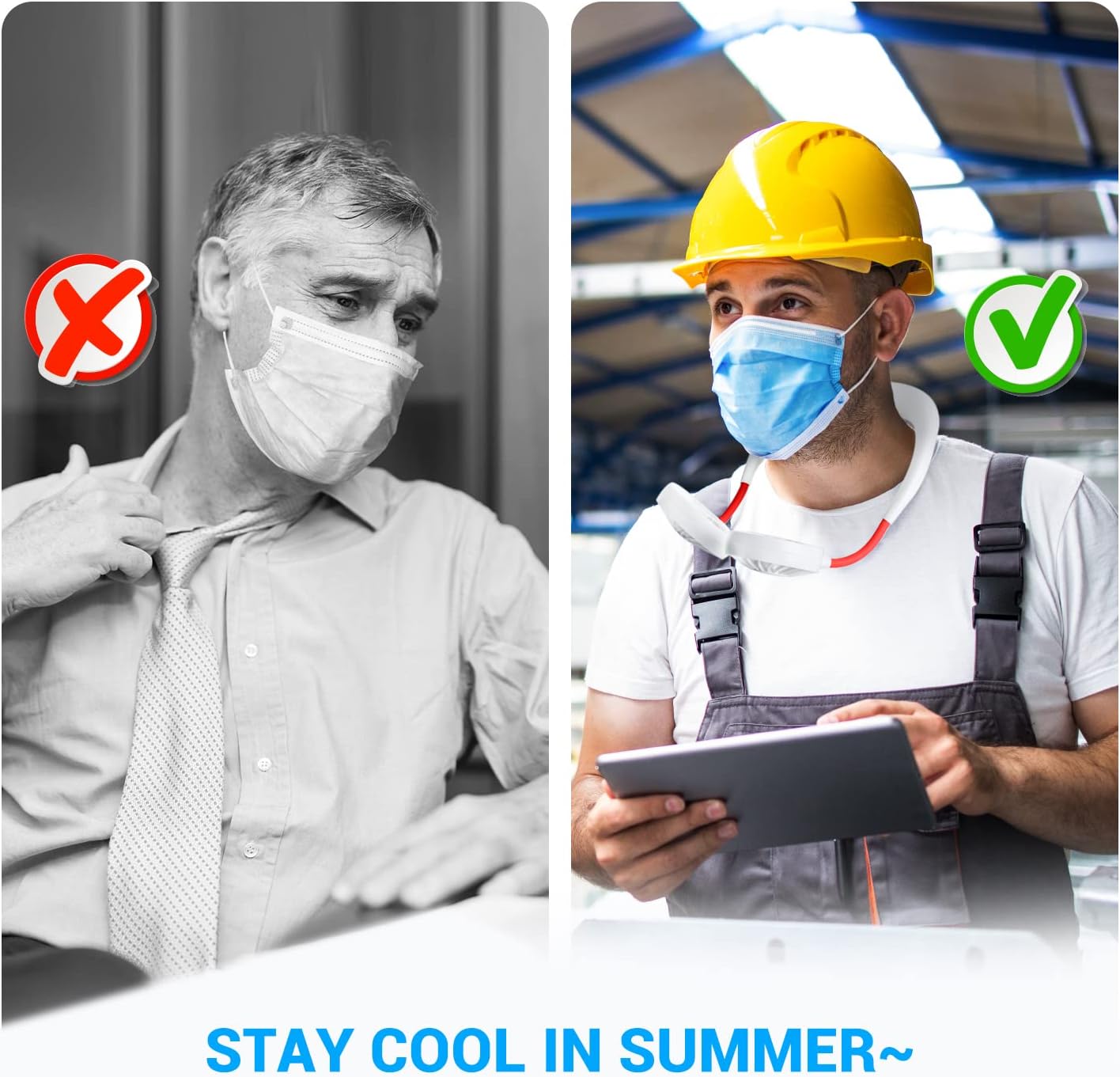 【Foldable Fan & 360°Rotating】Wearable fan has two heads,which can bring you more powerful airflow,and 360°adjustable angle,designed to let you choose the most suitable wind direction for you.Foldable for you to carry when you go out convenient,very suitable for camping, travel,hiking,work,mountaineering,fitness to carry.