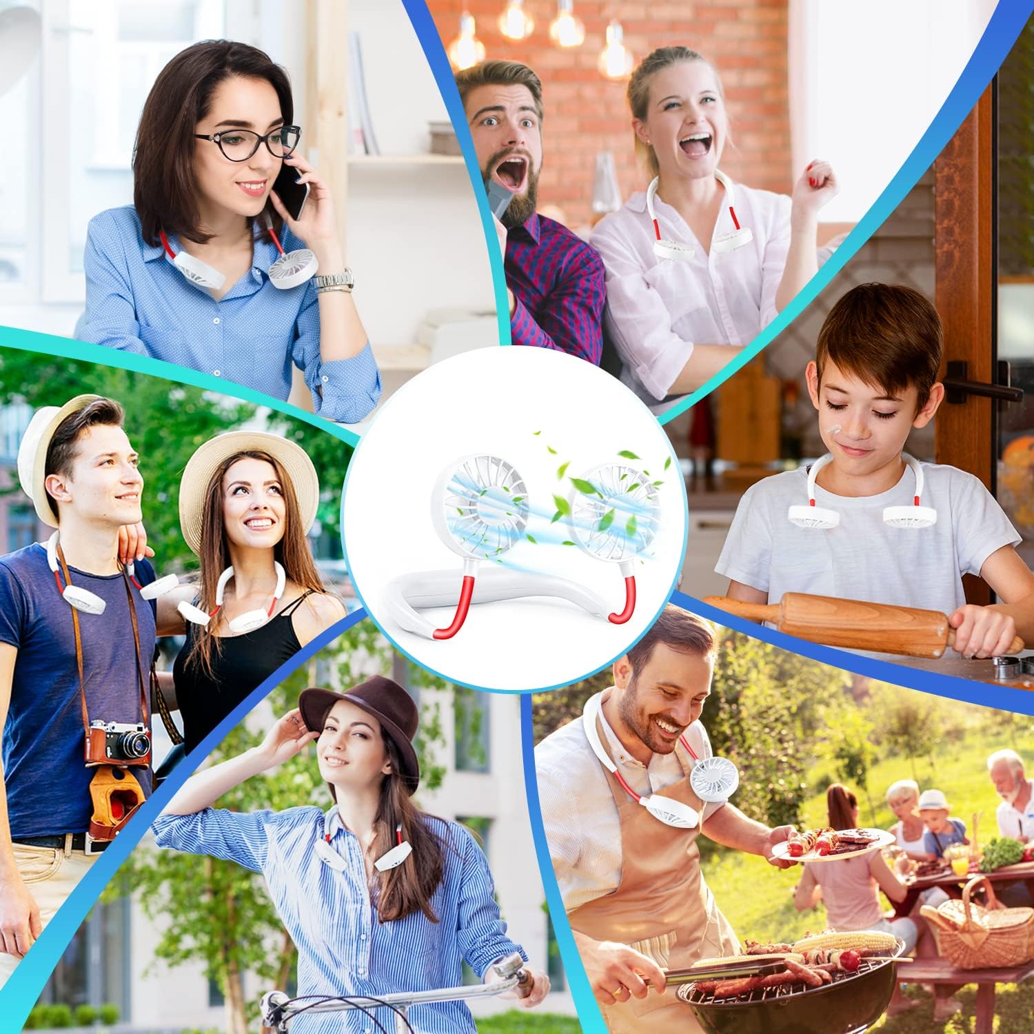 【Folding Design】Portable Neck Fan, can be bent 360 degrees of silicone hose design, after use can be folded well into the bag inside, small does not take up space, is very portable fan. Wearable rechargeable fan, Hanging neck fans, Outdoor sports fan neck”
