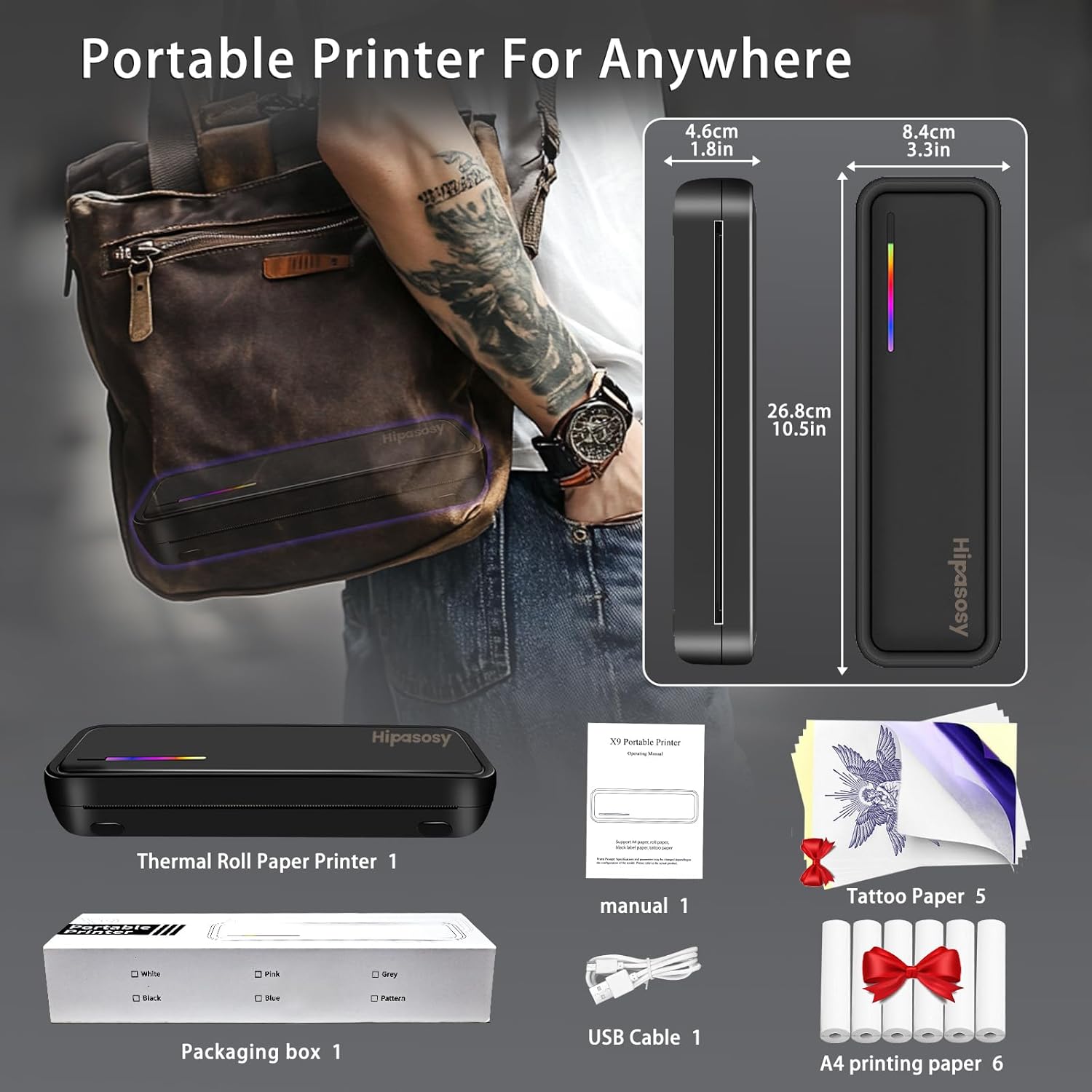 Portable Wireless Thermal Printer for Home & Travel – Mini Bluetooth Inkless Printer Compatible with 8.5″x11″ US Letter & A4 Size- Works with iOS, Android & Laptops – Ideal for Tattoos, Office(Black)