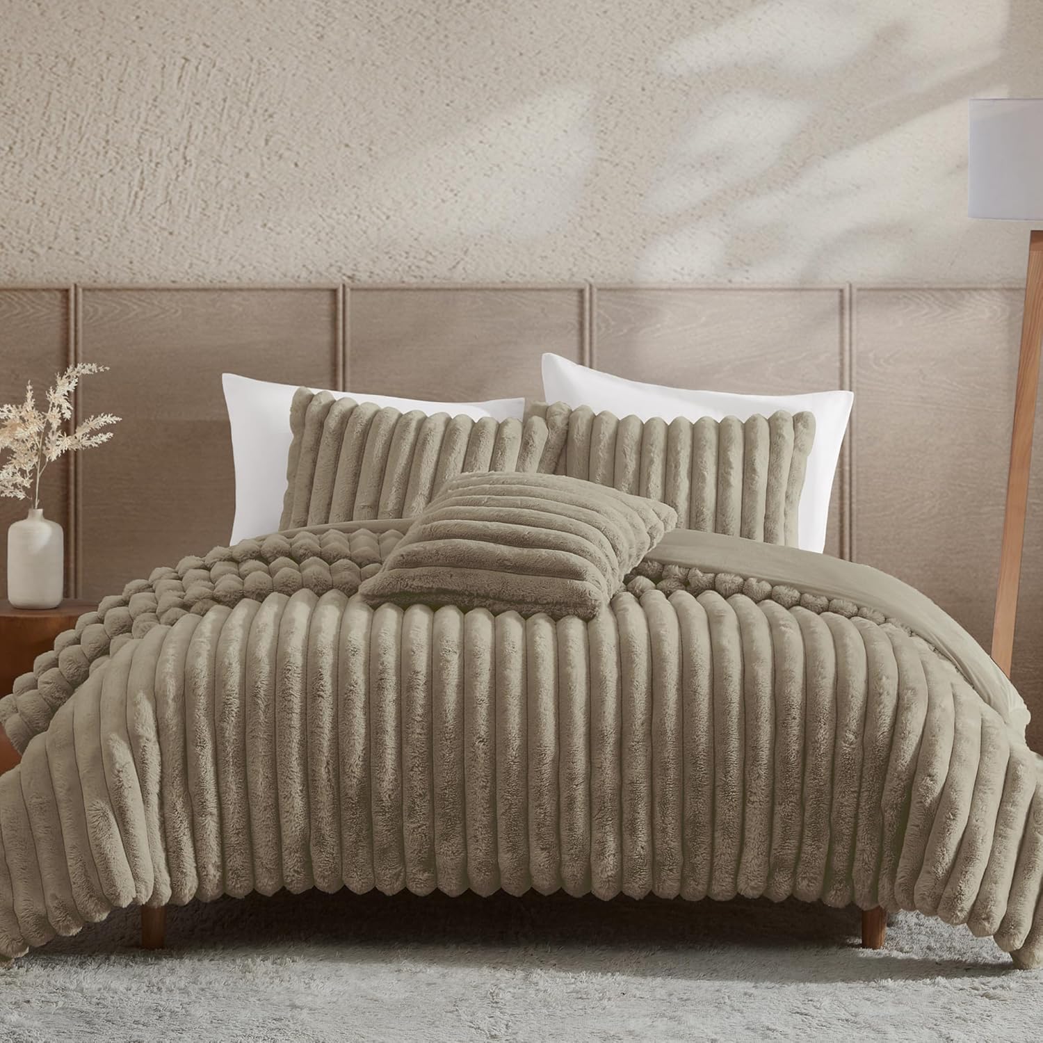 Riverbrook Home Everett Faux Fur 4-Piece Comforter Set, Full/Queen, Taupe