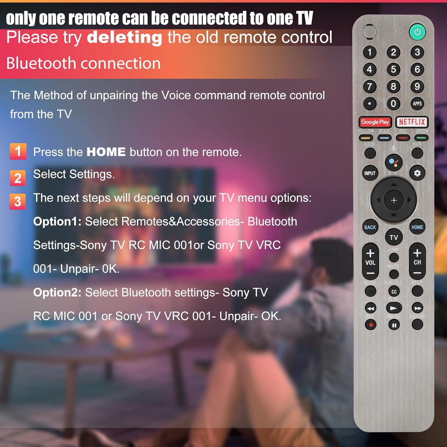 【Easy and Fast Pairing】Pairing rmf-tx600u remote control with your sony smart tv is easy and fast. Simply long press the [VOL(-)] button and [Google Assistant] button on the remote for 2 seconds, and it will start pairing with your sony tv. If you encounter any problems during the pairing process, Please write to us in time for assistance