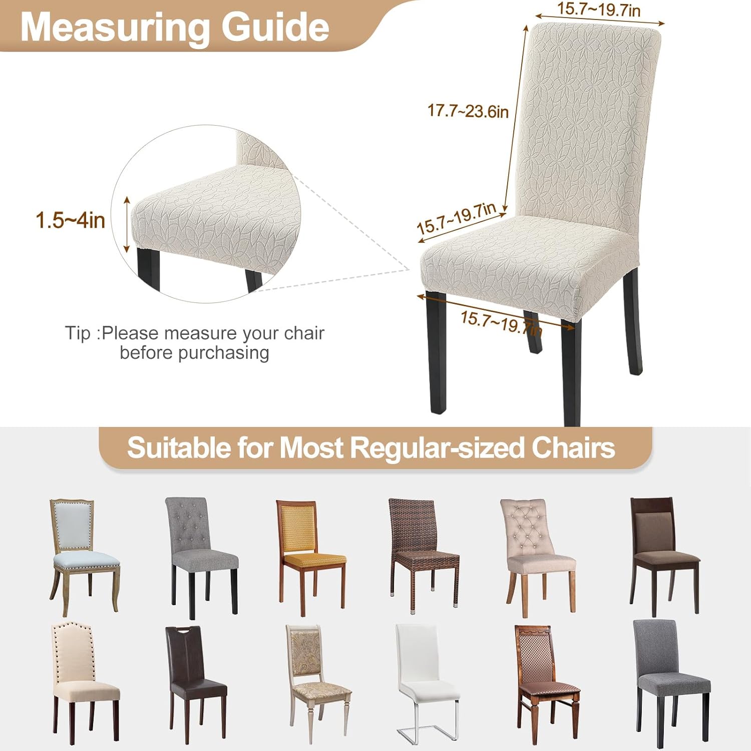 SearchI Jacquard Dining Room Chair Covers Set of 6, Stretch Kitchen Chair Covers Washable Parsons Chair Slipcover Removable Dining Chair Protectors for Hotel,Ceremony(Beige Floral Texture)