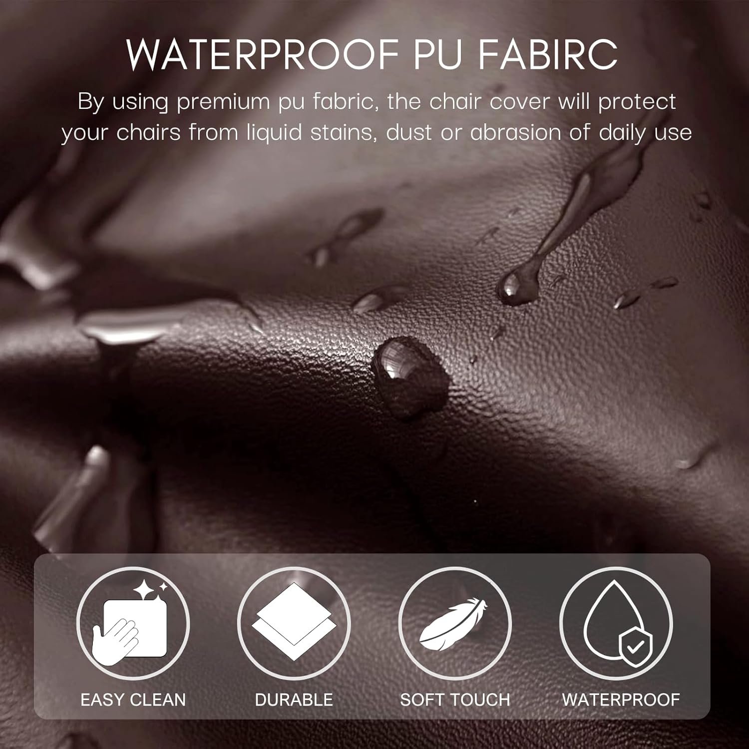 【Premium Material】High quality products means every detail is of high standard. Made of high quality faux pu leather, polyester and spandex material. SearchI chair seat covers have premium properties of High stretch, good glossiness and ultra durability. Upgraded drawstrings are durable and not easy to break or fall apart. Processed with unique dyeing technics, the chair covers features good color fastness and will not fade easily.