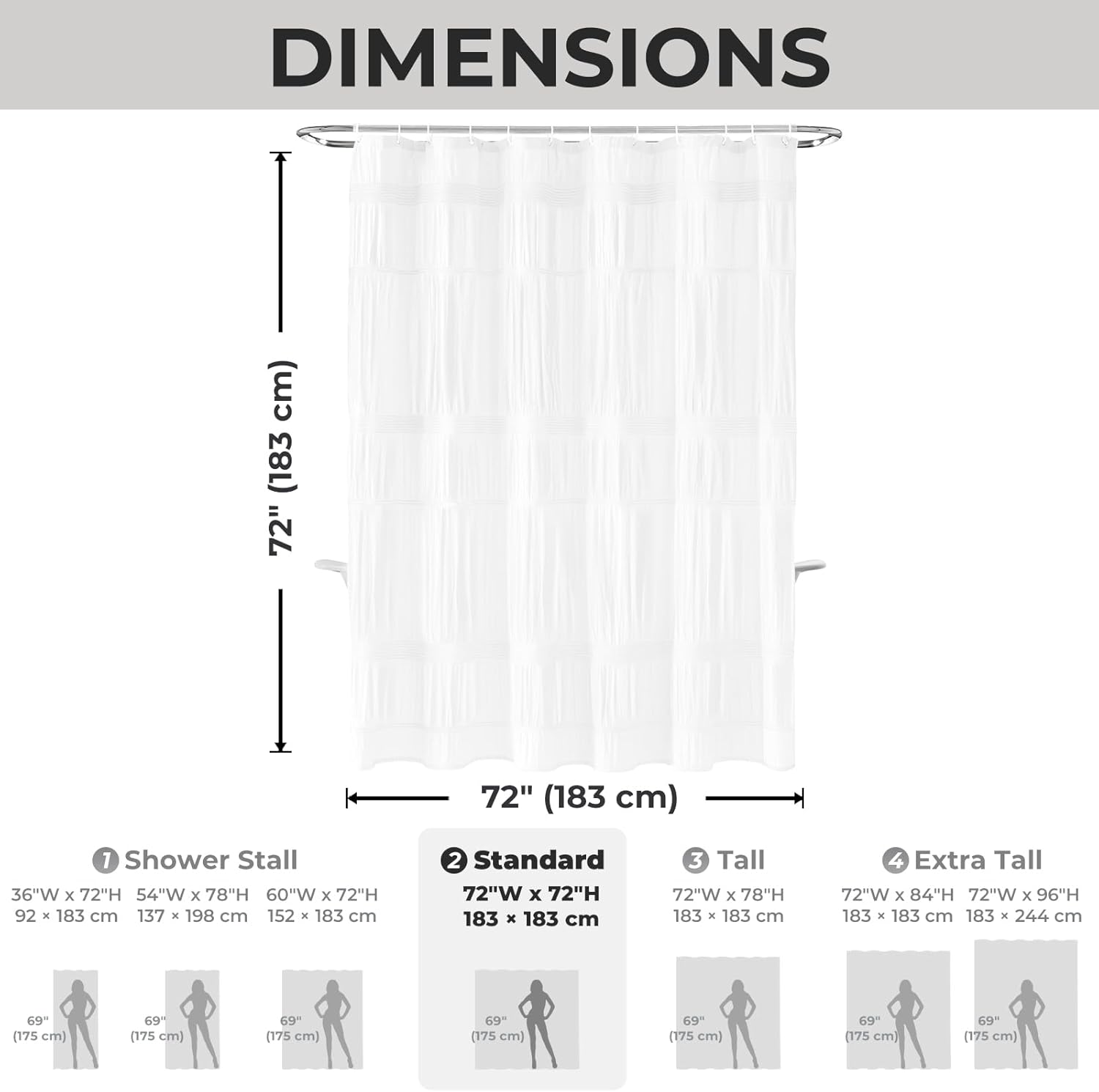 WHITE SHOWER CURTAIN SIZED – Measures 72″ x 72″(hooks included)