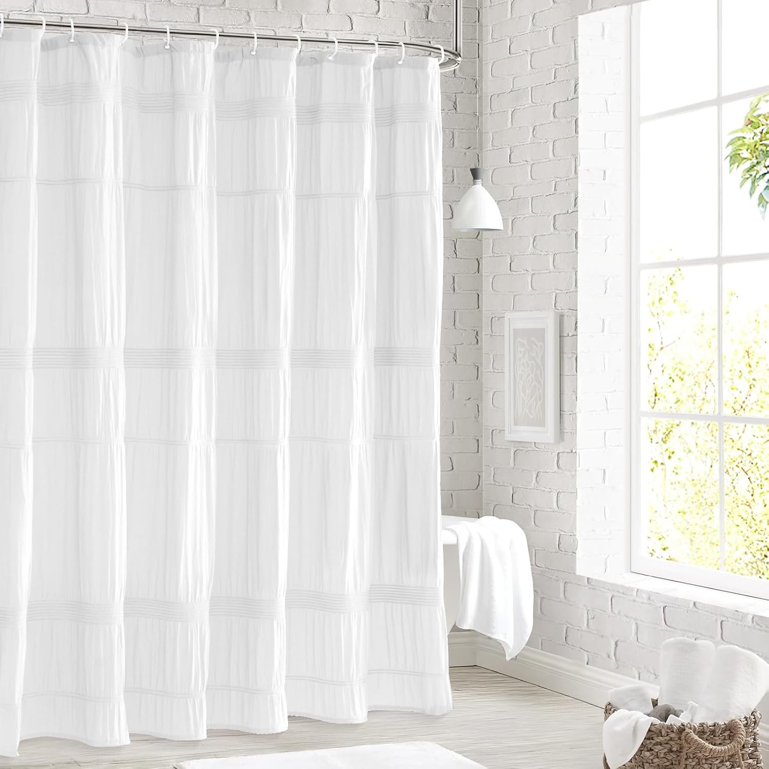 Seasonwood White Shower Curtain Farmhouse Shower Curtain Rustic Striped Cotton Blend Fabric Shower Curtains Heavy Weighted Bathroom Decor, 72 x 72