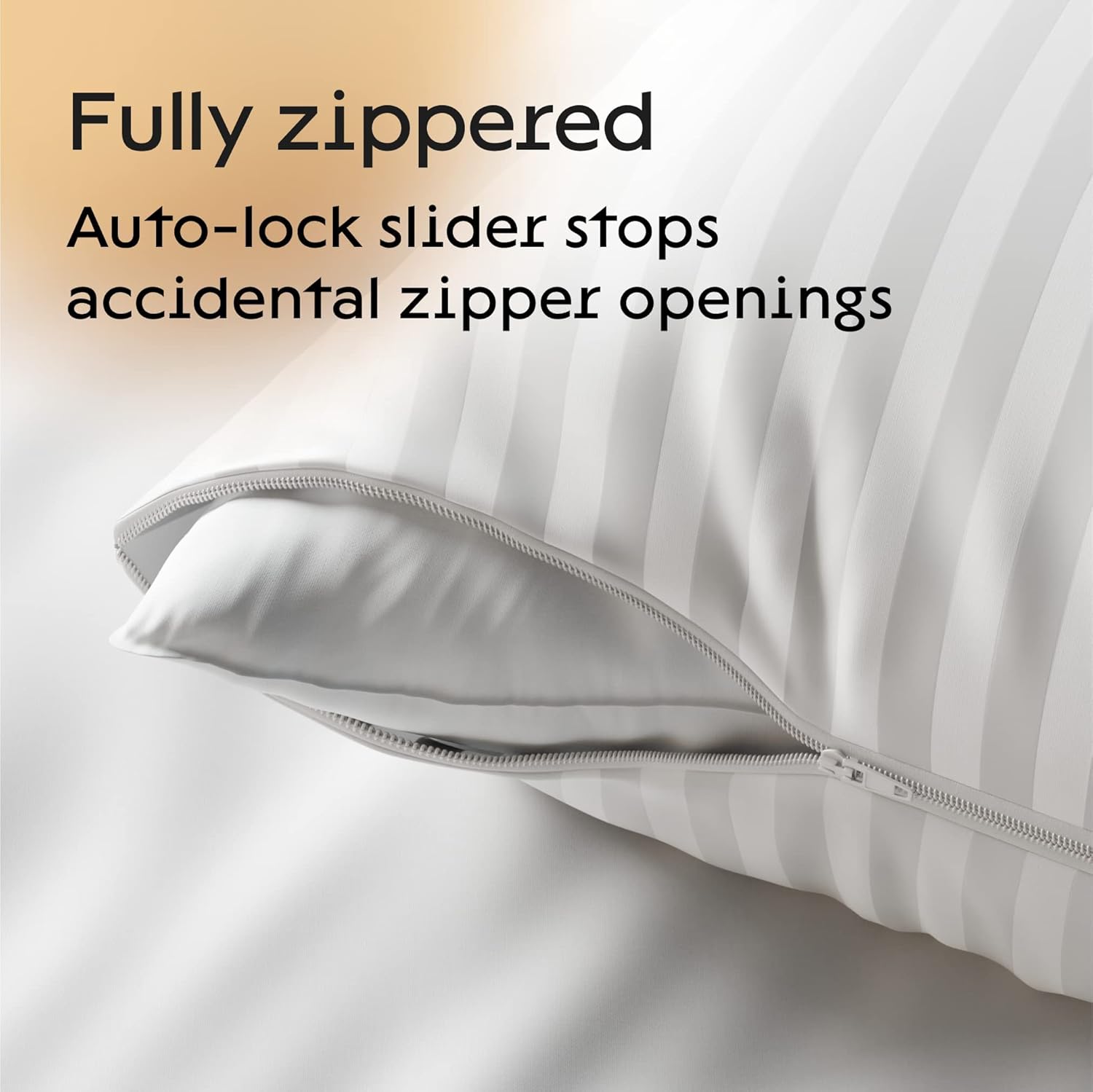 HIDDEN ZIPPER: Cotton pillow protectors zippered have a hidden zipper with an auto-locking slider. The protective pillow covers with zipper keep pillows safe from dust and dirt.