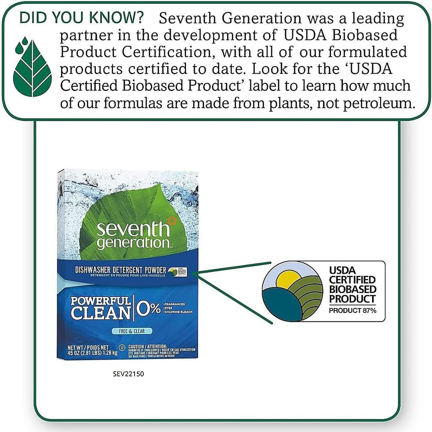 Seventh Generation Dishwasher Detergent Powder + Rinse Aid, Free & Clear, Biodegradable, Plant-Based & Fragrance-Free, Septic Safe
