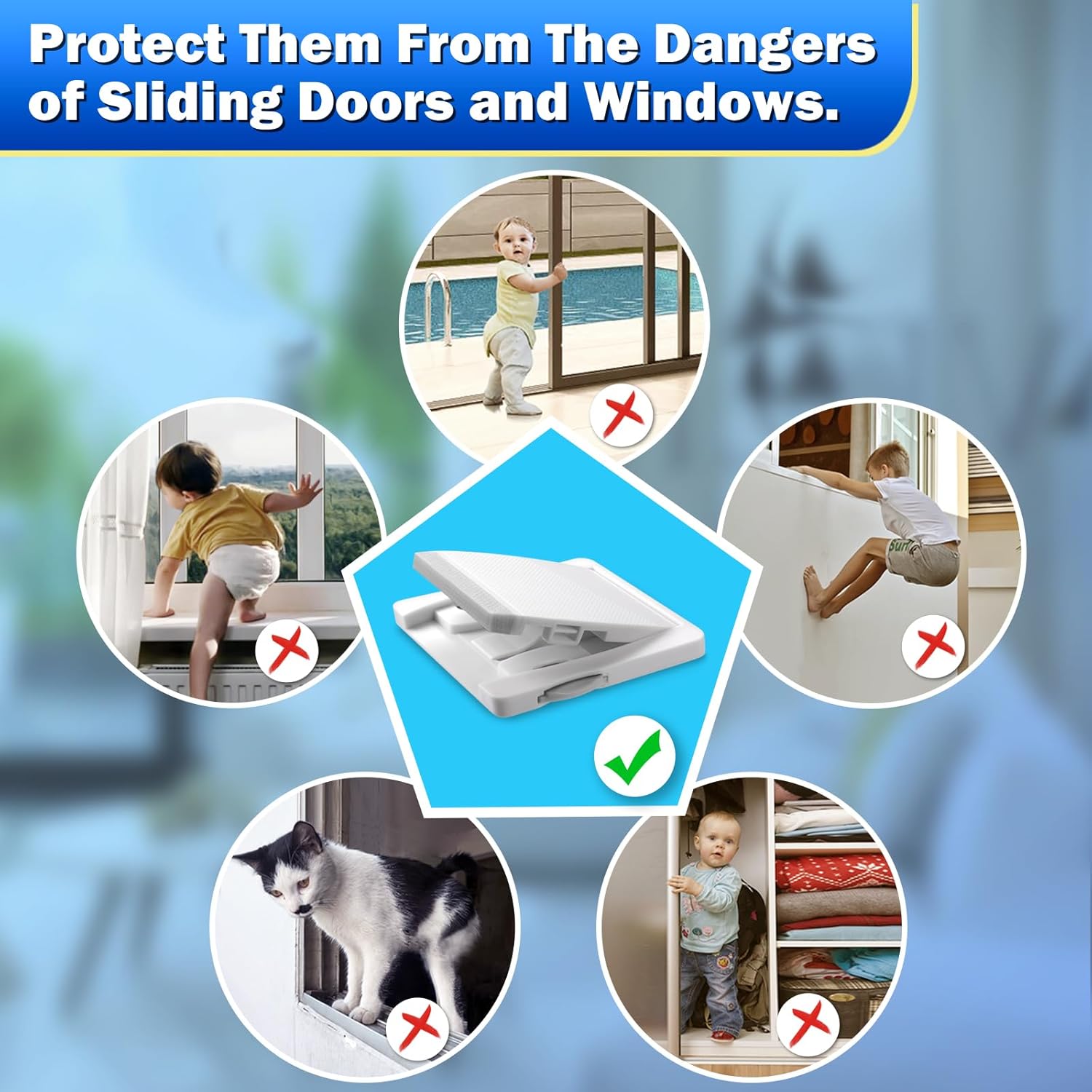 CHILD PROOF SAFETY DEVICE:Sliding glass door locks can control the partial opening or closing of sliding doors and sliding windows to prevent children from entering and exiting or falling accidents. Safety locks with cushioning and silent devices are proven to withstand the pull of babies and children, well Keep your baby safe.