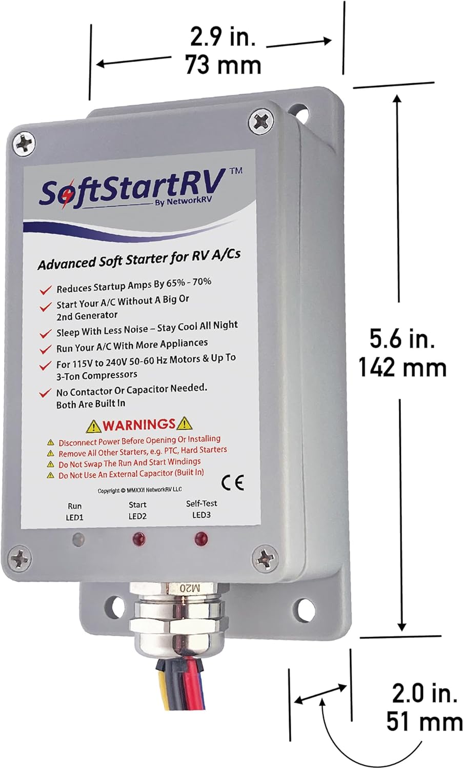 What sets us apart? Now 40% smaller to fit all Low-Profile RV A/C units. Start two A/Cs on 30-amp, one on a small generator, or 15-amp. 100% waterproof. Our RV soft start technology leads the market!