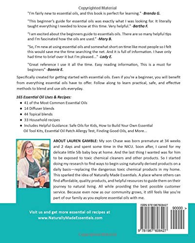 Are you feeling lost in this MASSIVE world of essential oils? It’s not your fault. There are over 124 different plants in the form of essential oils. That’s a lot of different oils! On top of that, the use of essential oils is not 2nd nature. It’s not common sense, and many people make mistakes when getting started. Here’s what can happen if you use essential oils incorrectly:Accidentally burning your skin from the photo-toxicity properties of some essential oils.Children have become very ill when finding improperly stored essential oils.Allergies can make your skin itch and rashes can form if you don’t properly test oils your skin.What’s more concerning is this. You can use essential oils and it can open up a whole new world of benefits for you, your family, and your friends. But if you do not understand which oils do what, and how to use them properly… you can do more harm than good. Here’s why I created this book: The Ultimate Beginner’s Guide to Essential Oils for Home, Health, and Healing Because once you have this 109 page book, you won’t make the common mistakes most people make with oils. This is everything you get access to inside this guide: 165 Essential Oil Uses & Recipes:41 of the most common essential oils14 Diffuser blends44 Topical blends33 Household recipesPlus more!How to Build Your Own Essential Oil Tool Kits:Essential Oils Holiday KitEssential Oils Cleaning KitEssential Oils Beauty KitEssential Oils Restful KitEssential Oils Energy KitEssential Oils Focus KitEssential Oils Safety:SAFE OILS FOR KIDS: List includes all known safe oils to use with kids of varying ages: Toddlers and Babies, 3-6 years old, 6+ years old, TeensPlus, information on which essential oils to avoidBest Practices:Dilution chart for: adults, teens, kids, toddlers, babies, water and laundry detergentHow to do an Essential Oil Patch Test to test for an allergy How to Tell If a Company Has Quality Essential Oils And Much, Much More!