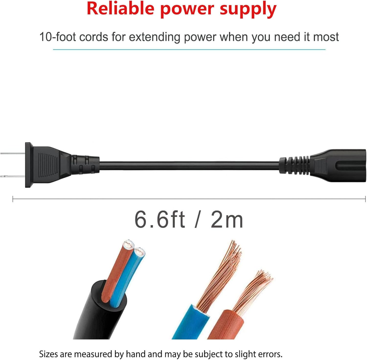 2.Scope of application: 6.6-foot AC power cord Replace the 2 pin power cord extension for most models of scanners,samsung monitor power cord,LCD TV monitors,tv power cord replacement,tv power cord replacement,samsung tv cord replacement,SONY PS4,PS3 Slim Edition,PS2 and more, have a removable power cord and use the 2-slot Figure 8 shotgun power connector.Check the tail shape before buying