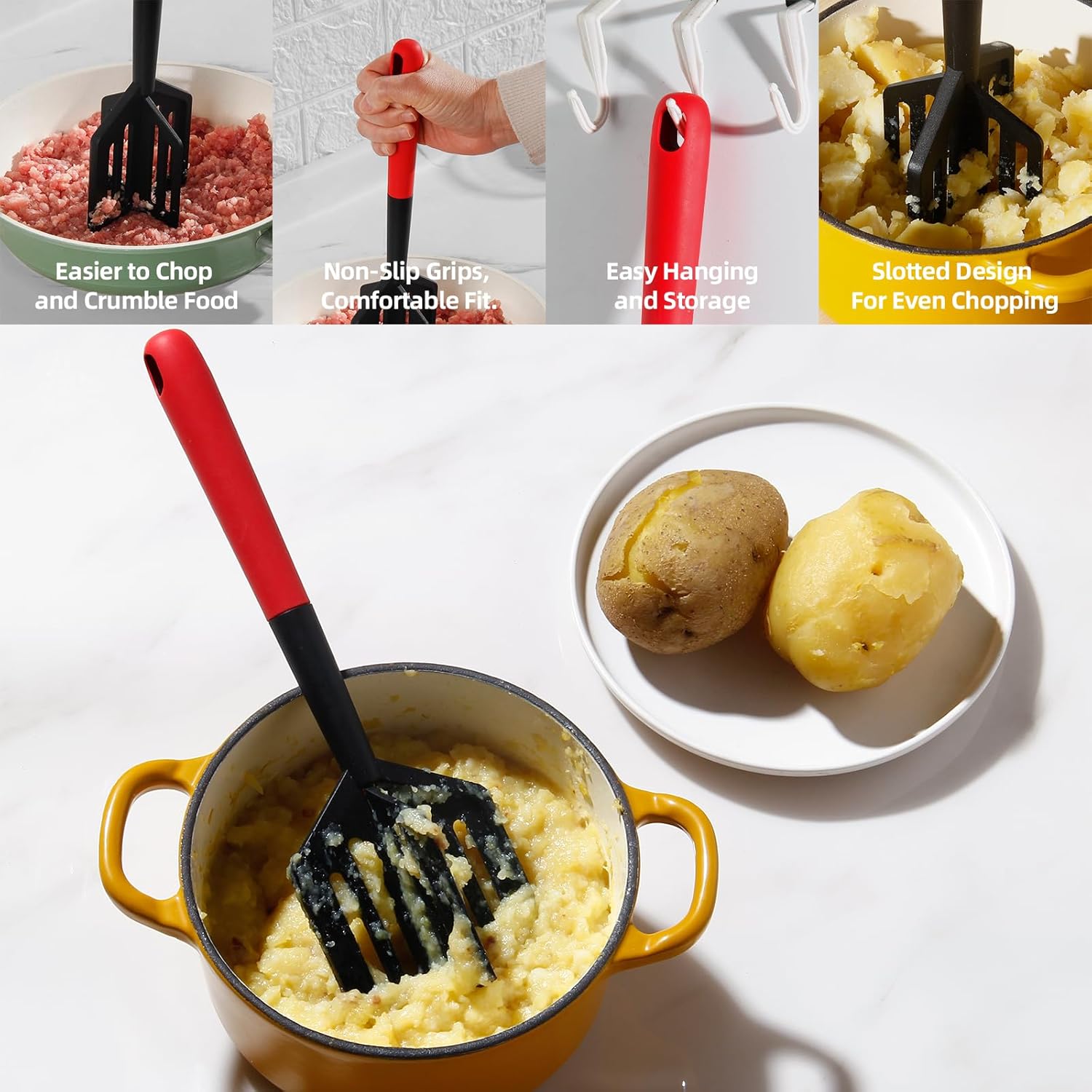 Upgrade 2-in-1 Meat Chopper & Spatula for Ground Beef, Hamburger, Turkey, Potato & Vegetables – Heat Resistant, BPA Free – Non-Scratch Utensil for Mixing, Mashing, Stirring in Non-Stick Pans