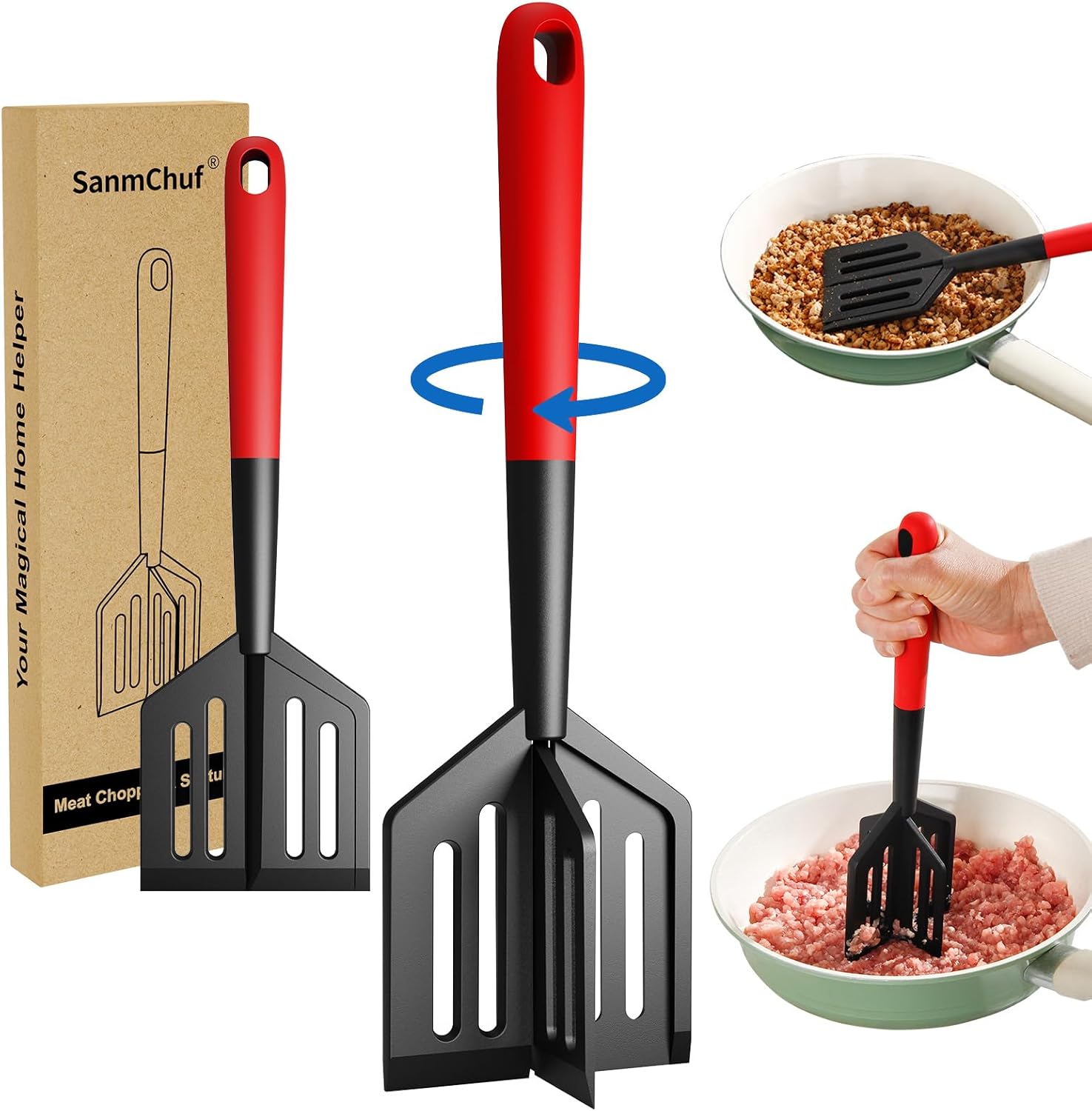 🥄 2-in-1 Design – Chop & Stir with Ease: Quickly switch between spatula and meat chopper—perfect for breaking up ground beef, stirring sauces, or flipping pancakes with one versatile tool.