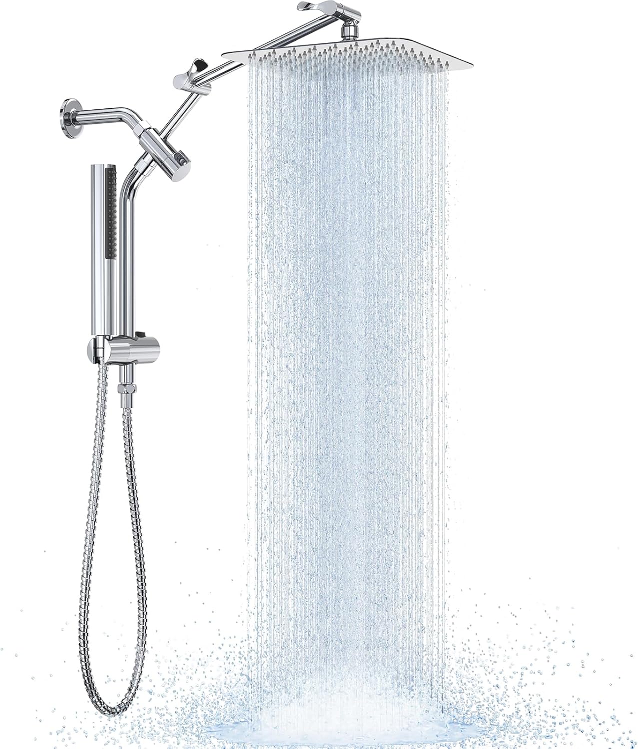 10-Inch Square Shower Head: This 10-inch square shower head, paired with a convenient handheld sprayer and featuring a wide-angle water output, offers a luxurious rainfall effect for a deeply relaxing experience