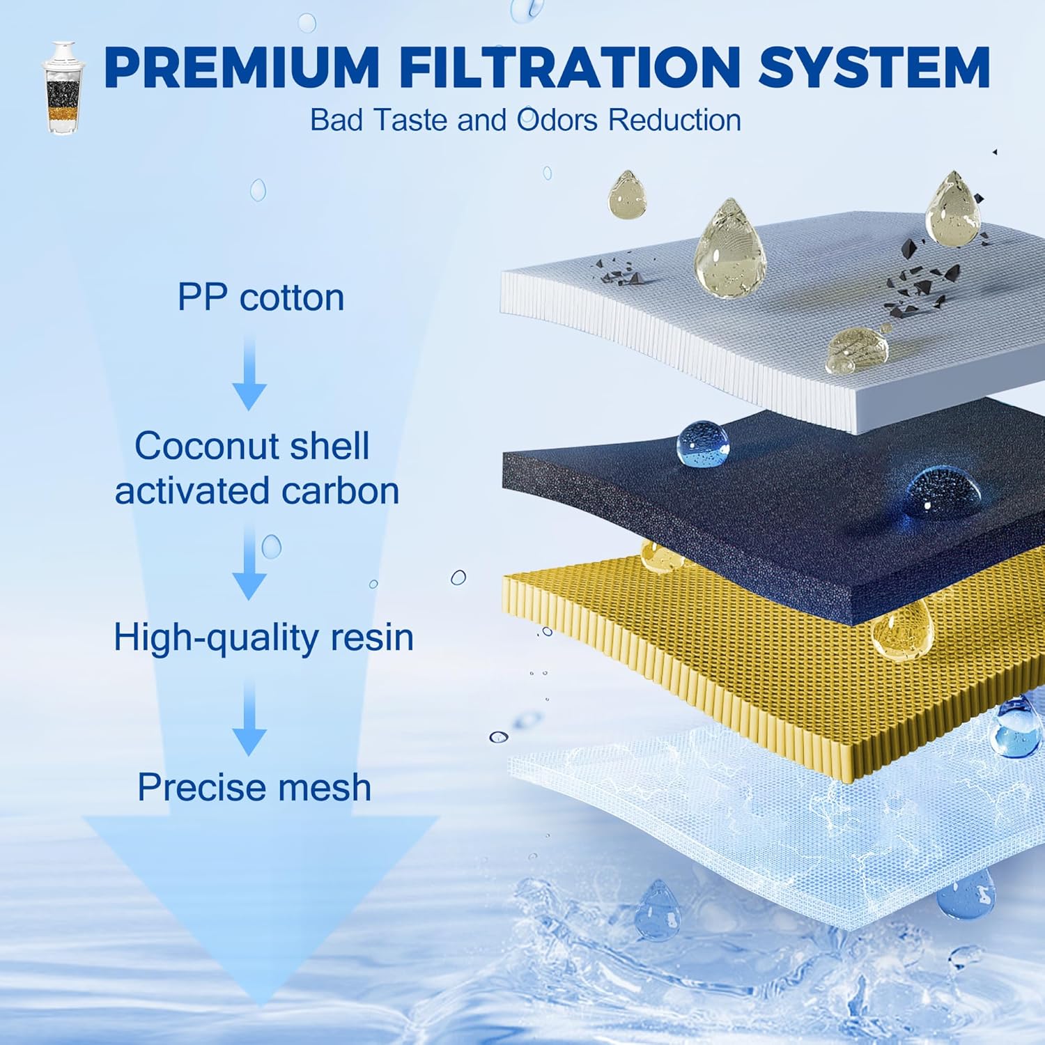Safety & Sustainability:Crafted from food-grade materials, this water filter prioritizes safety, providing pure, contaminant-free water for your family. When using the filter for the first time, you may notice activated carbon particles in the water,this is normal and can be resolved by rinsing the filter twice before use. Plus, by choosing this water filter, you’ll significantly reduce reliance on single-use plastic bottles—making a practical and friendly choice for the planet.