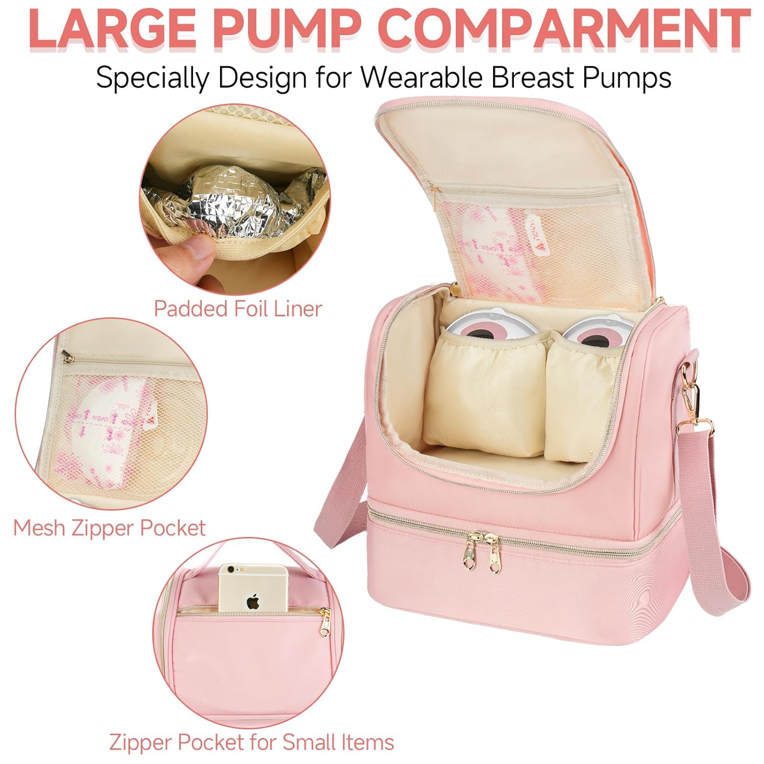 WIDE COMPATIBILITY: The breast pump cooler bag is designed with 2 padded foil liner pockets, perfectly compatible with Willow, Elvie Stride, Momcozy M5/S12 Pro and Medela wearable breast pumps and accessories