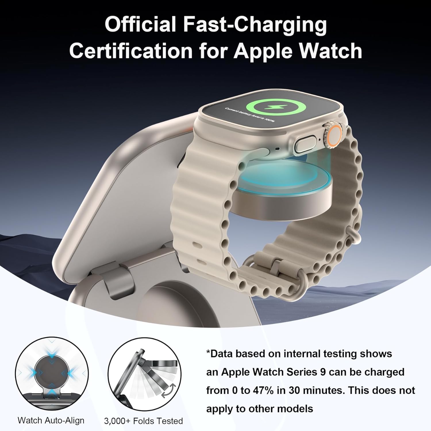 Wireless Charger for MagSafe, AC Island 5-in-1 Portable Travel Charging Station, 15W Max Fast Foldable Magnetic Stand, Evolved for iPhone 16/15/14/13 Series, Apple Watch, AirPods (with 35W Adapter)
