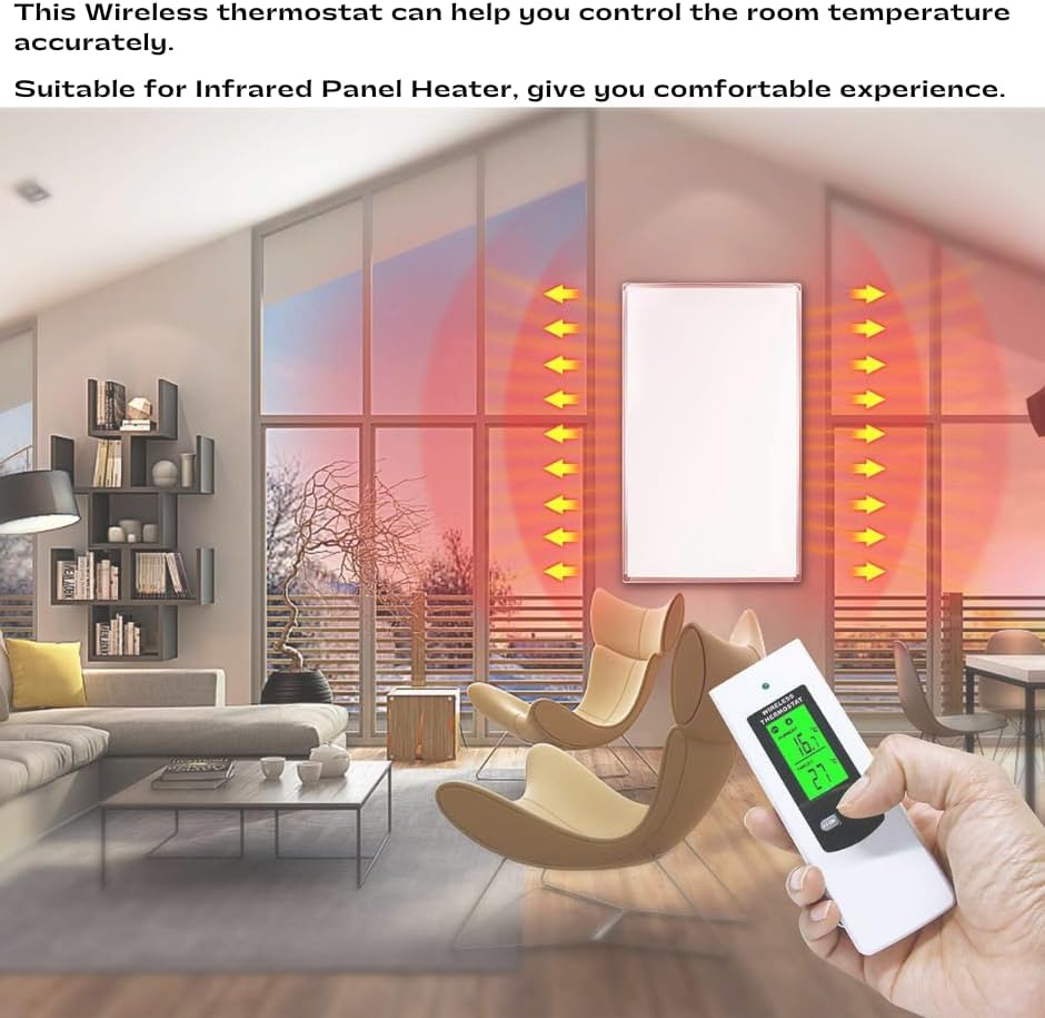 【Wide Range of Application】 Built-in temperature sensor in remote controller body; Display current temperature and Target temperature, when you preset the target temperature, it will automatically turn on and turn off connected heater/cooling device or home applicants,and maintain in a stable room temperature.