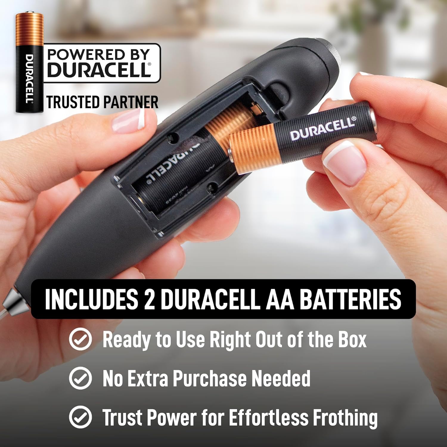 Zulay Kitchen Powerful Milk Frother Wand With 2 Duracell Batteries – Ultra Fast Handheld Drink Mixer – Electric Whisk Foam Maker for Coffee, Lattes, Cappuccino, Matcha, Hot Chocolate & Creamer – Black