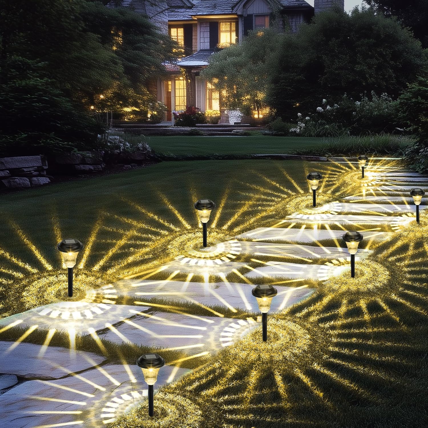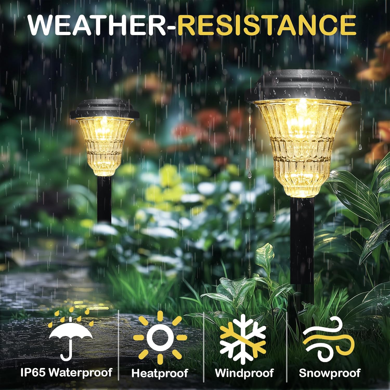 【Durable & Weatherproof】With IP65 waterproof rating and sturdy ABS material, these lights are built to withstand rain, snow, and harsh heat. Ideal for year-round outdoor use, they’re more durable than standard solar pathway lights.