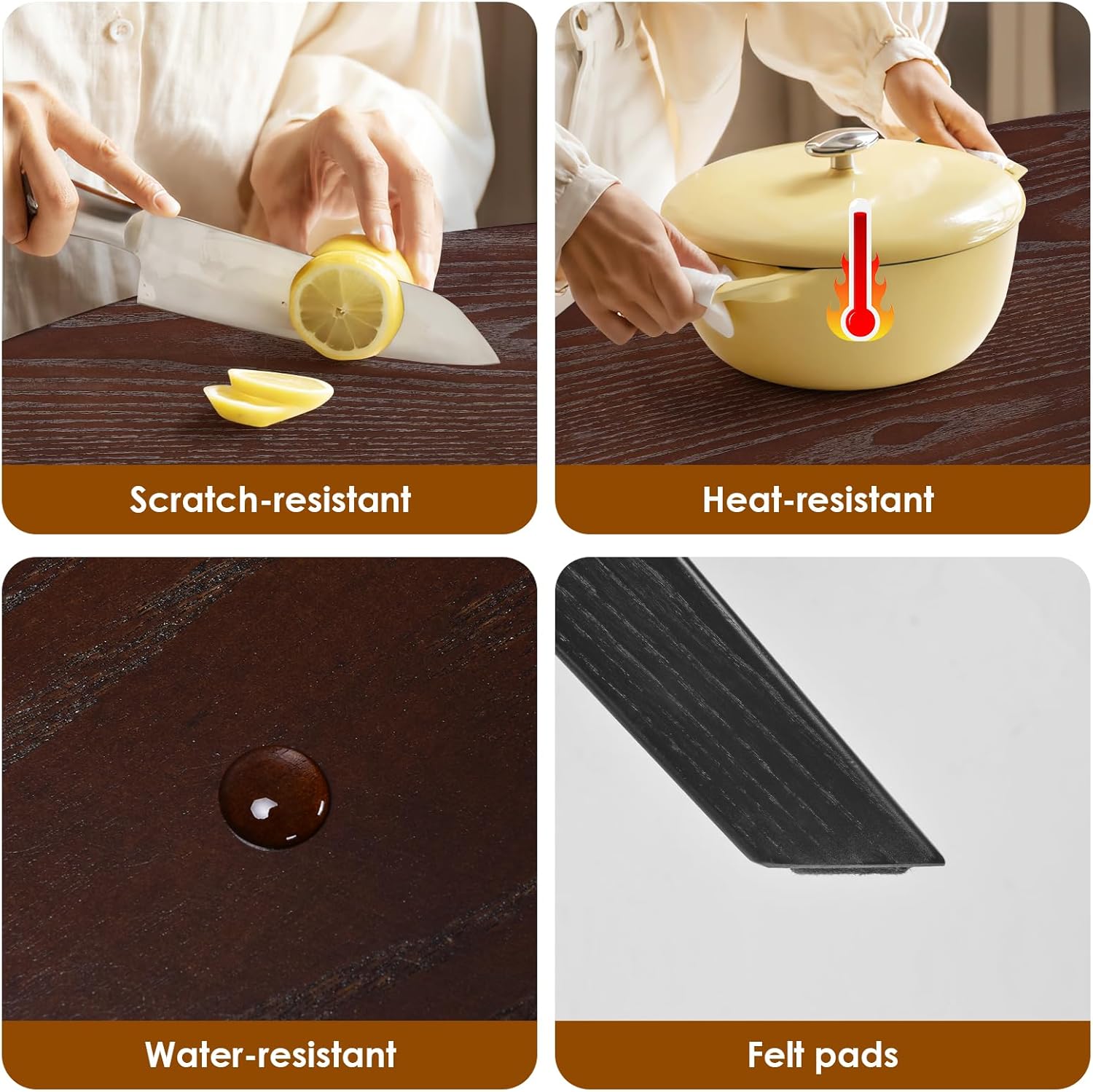 Comes with soft pads: This round dinner table includes soft pads under its legs to protect floors from scratches, ensuring your hardwood, tile, and other flooring types stay clean and undamaged.