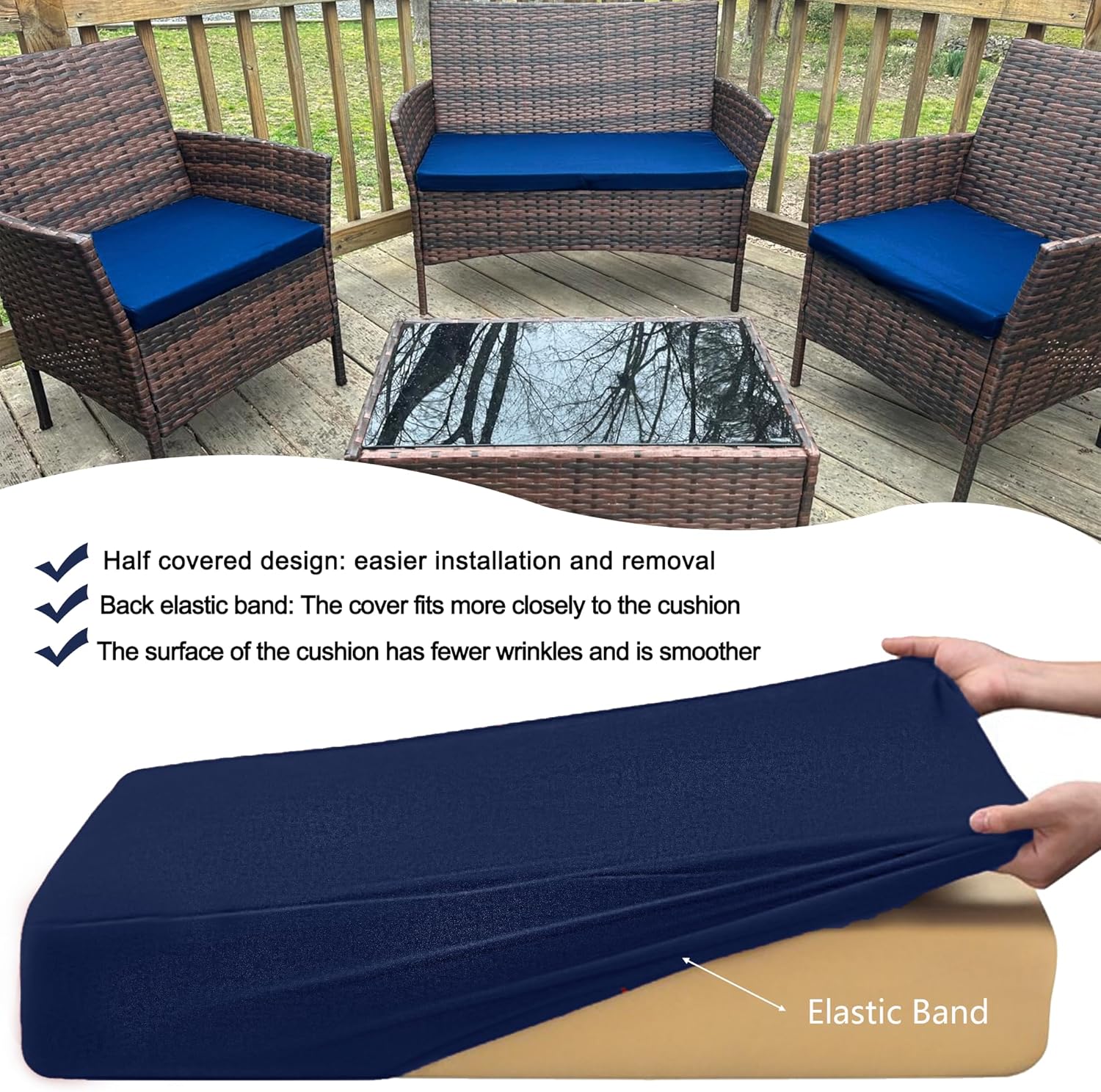 Durable Materials & Easy to Care:The bench cushion cover replacement is made of durable canvas oxford fabric,durable,Strong breathability,comfortable for prolonged sitting without stuffiness.It is easy to wear and remove ,And it can be machine washed