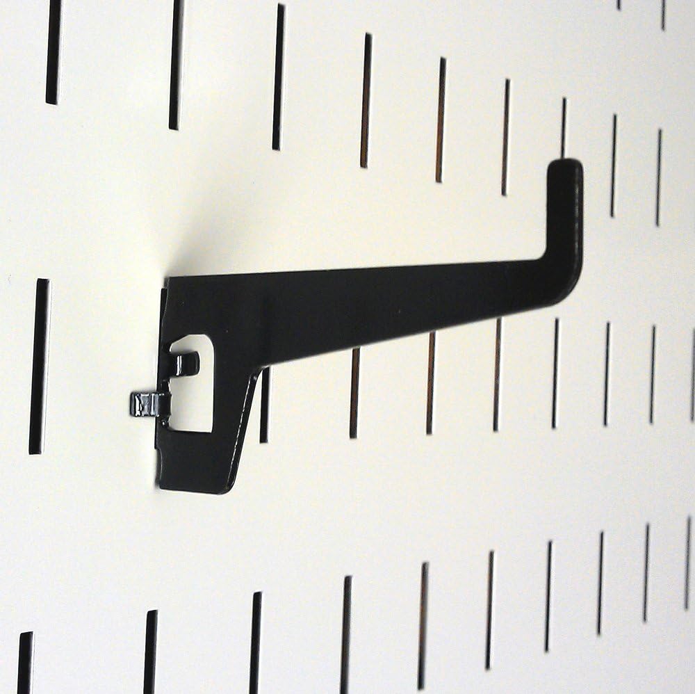 The Wall Control Pegboard 2-7/8in Long Reach Slotted Hook for Wall Control’s Pegboard and Slotted Tool Board is great for garage tool storage and organization and is a great pegboard hook for hanging many items such as multiple boxed end wrenches, crescent wrenches, buckets, baskets, backpacks, and many more household items. The Wall Control Pegboard 2-7/8in Long Reach Slotted Hook extends roughly 2-7/8in from the pegboard tool board and features a 1/2in tip which prevents tools and accessories from sliding off the peg hook. Wall Control Slotted Metal Pegboard Hooks feature a scratch and rust resistant baked-on finish. These more secure and stable tool board hooks are for use with the slots found in Wall Control Metal Pegboard tool board panels only. Wall Control Slotted Tool board hooks offer a patented engagement that requires two deliberate motions up-and-down to engage and disengage the hooks. This feature makes Wall Control Slotted Pegboard hooks less likely to fall out of the tool board than conventional peg hooks that can easily fall off when tools are removed. Although Wall Control Metal Pegboard Panels will accept conventional 1/4in pegboard accessories as well as Wall Control Slotted Accessories the Slotted Secure Tool Board Hooks included in this pack are only for use with Wall Control Metal Pegboard Panels and Tool Boards. Wall Control Pegboard Products are Made in the USA (4) Black 2-7/8in Long Reach Slotted Tool Board Hooks Included Only for use with Wall Control Pegboard and Slotted Tool Board Panels.