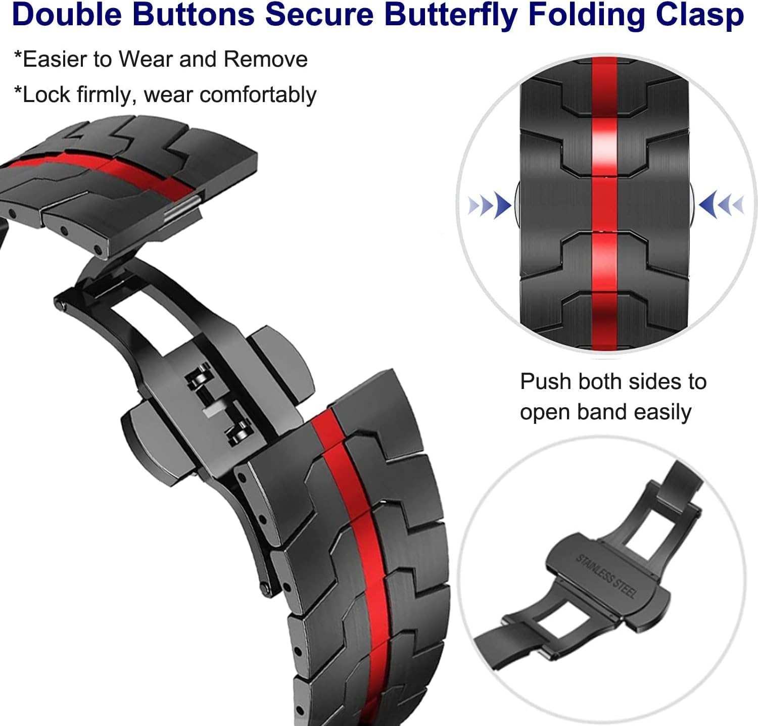【Secure Folding Clasp】Wingle for Apple Watch ultra 2 band 49mm for men adopts refined double buttons folding clasp design, double firmly closed to avoid your Apple watch loose automatically and fall down by accident. Easy to press the release buttons on both sides of the buckle to open the watch straps simply by one hand.