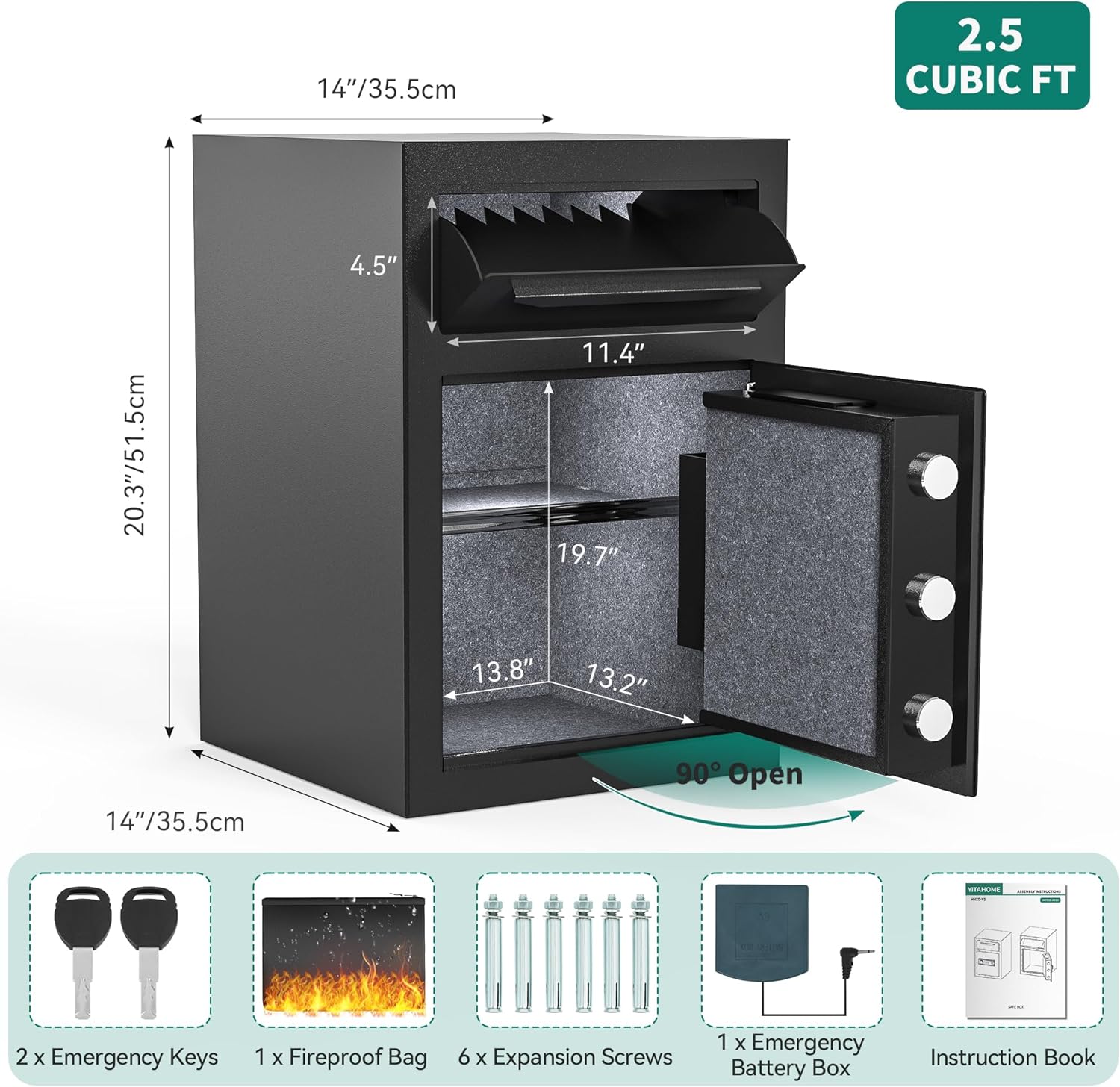Functional Features: Designed with the user in mind, the YITAHOME deposit safe includes a plush velvet lining, LED illumination, and a fireproof pocket so you can safeguard valuables with ease and comfort