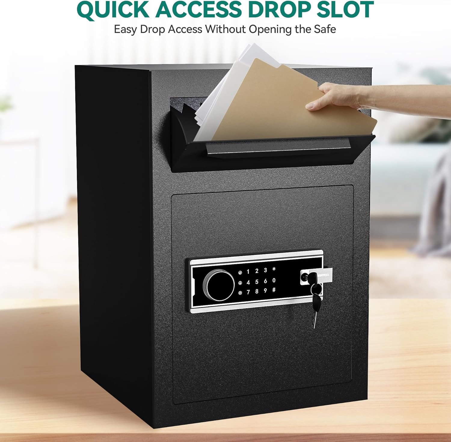 Anti-theft Drop Slot: Safe with drop slot features an upper deposit slot to facilitate cash storage without having to open the safe; Concerned about thieves? Our anti-theft internal baffle effectively deters intruders from accessing any contents